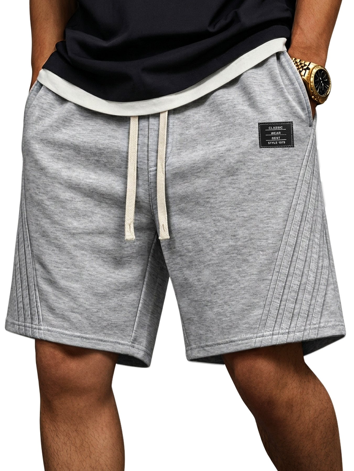 Men's Ribbed Fashion Shorts with Embroidered Design