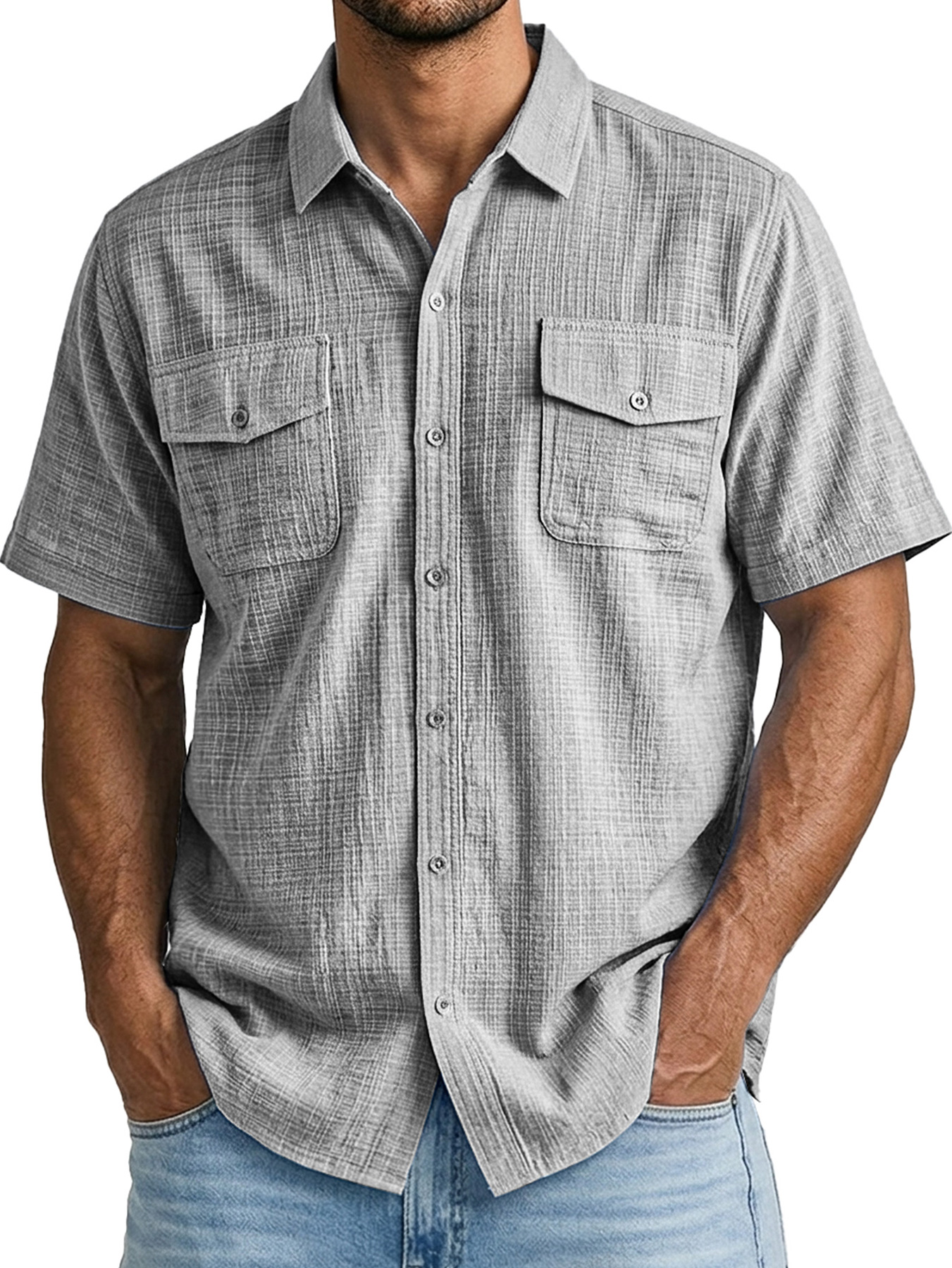Men's Simple Textured Pocket Casual Short-Sleeve Shirt