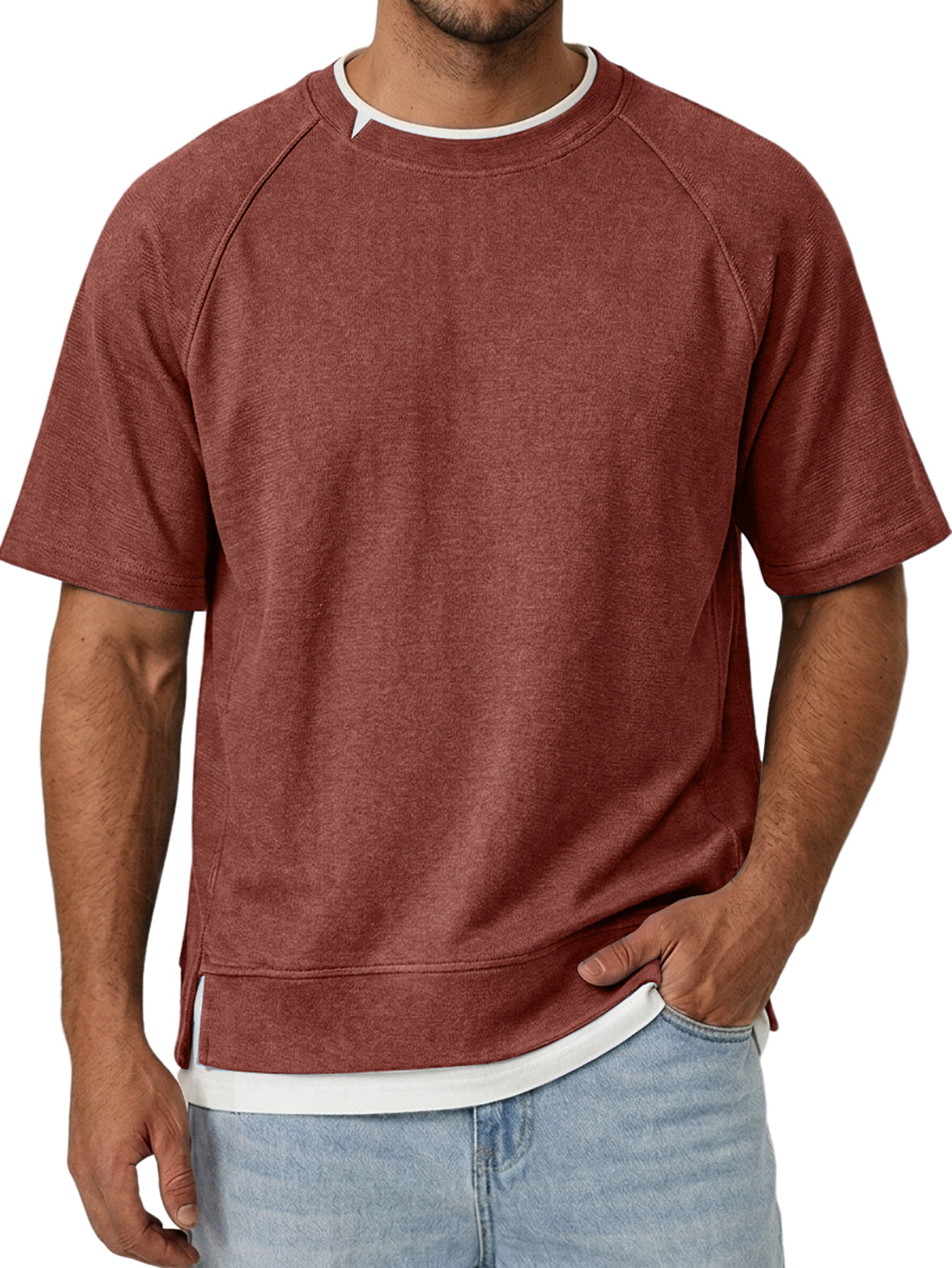 Men's Crew Neck Deconstructed Casual Short-Sleeve T-Shirt