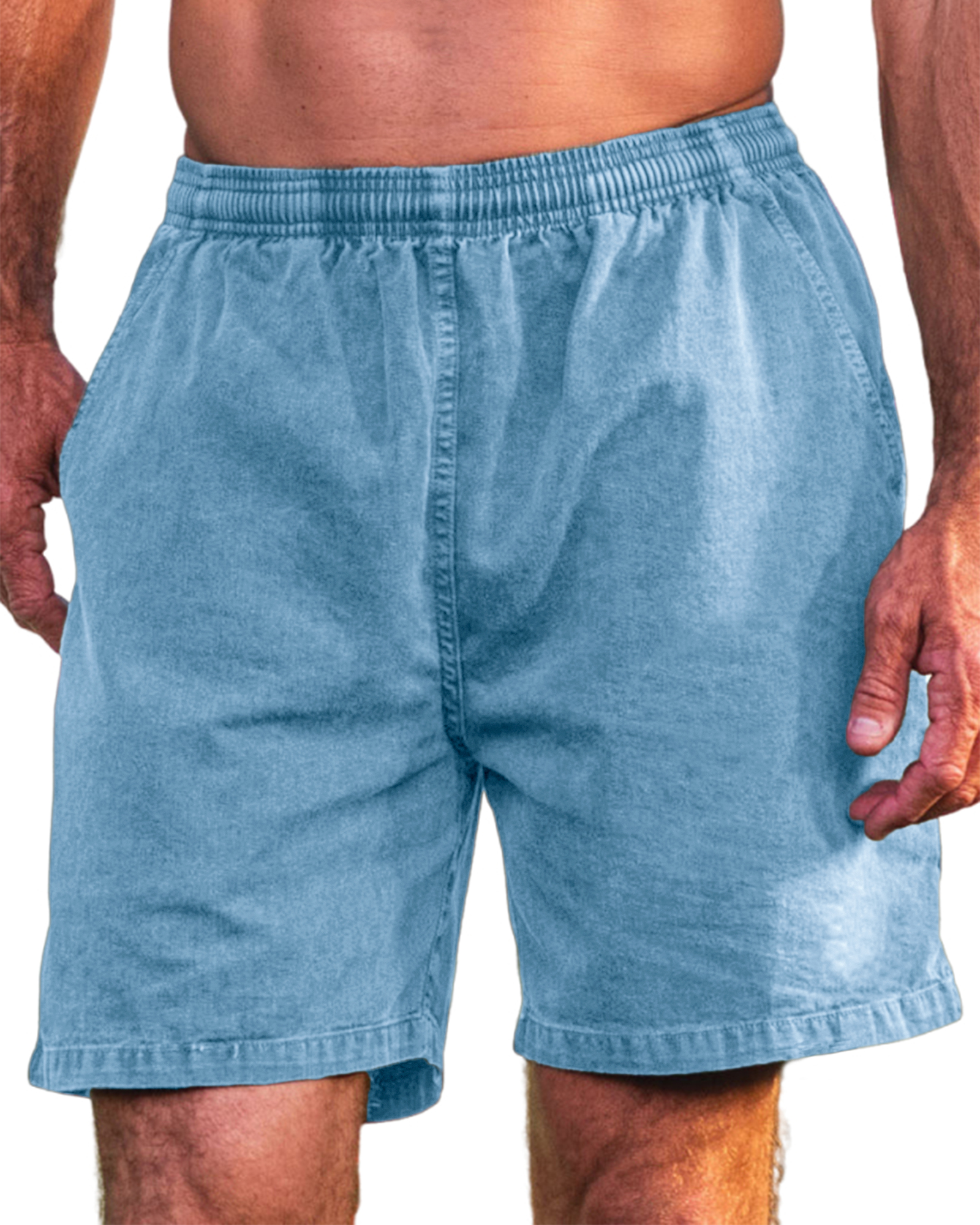 Men's Stylish Cotton Dyed Everyday Casual Elastic Waist Shorts With Side Pockets
