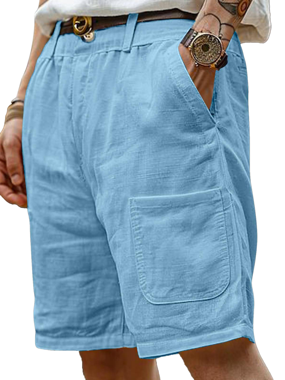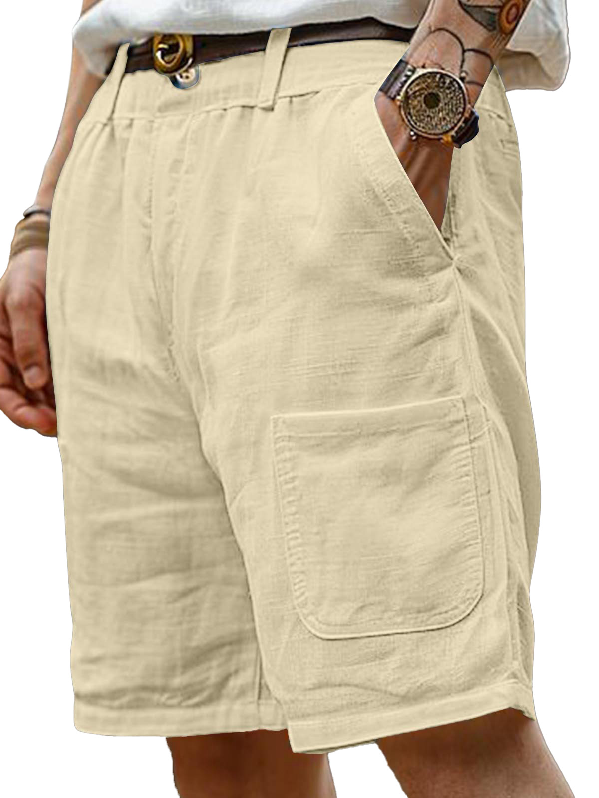 Men's Summer Loose And Comfortable Cotton And Linen Pocket Beach Shorts