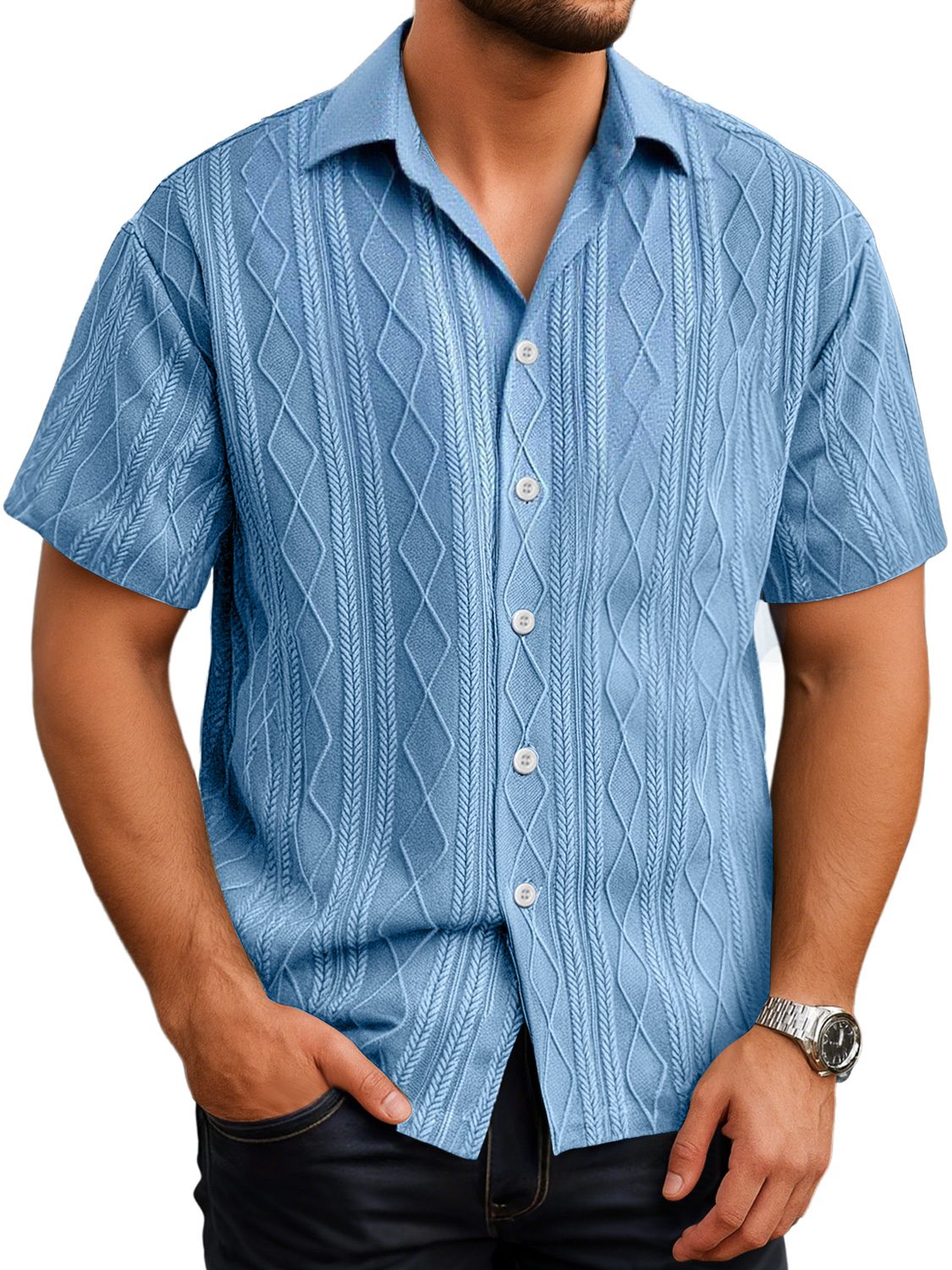 Men's Daily Casual Jacquard Texture Pocket Solid Color Short-sleeved Shirt