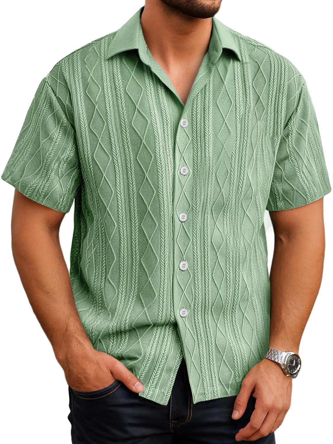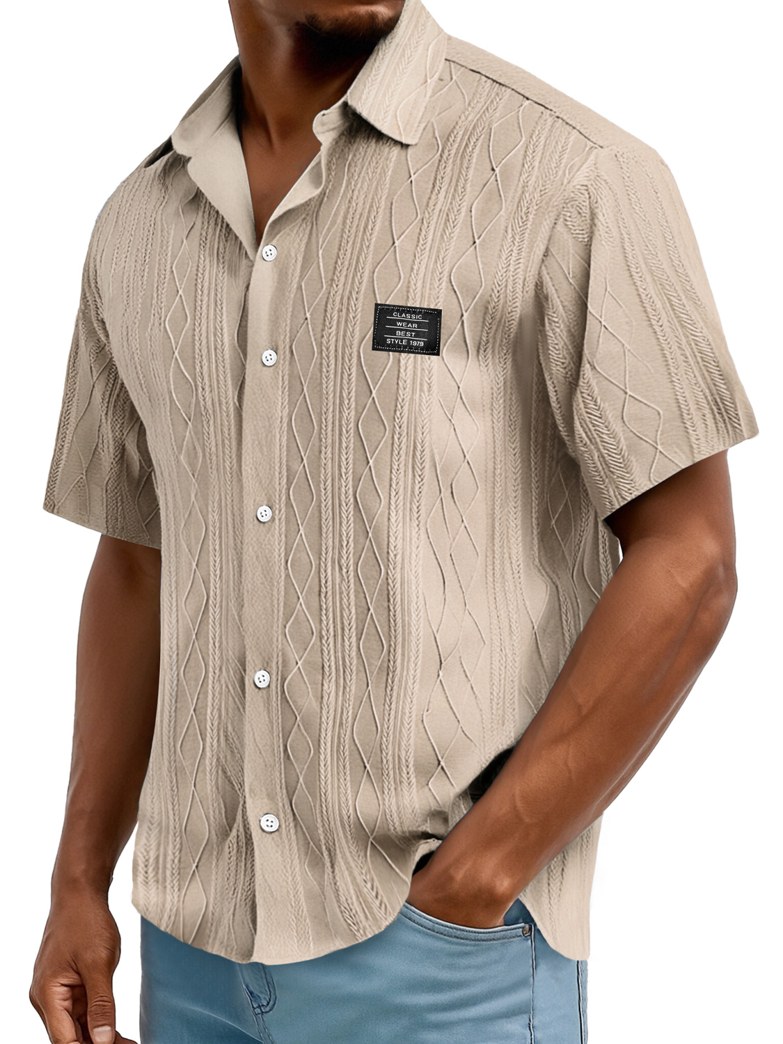 Men's Daily Texture Casual Lapel Solid Color Short Sleeve Shirt