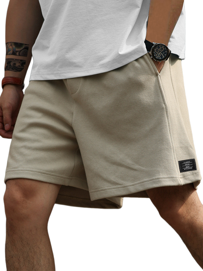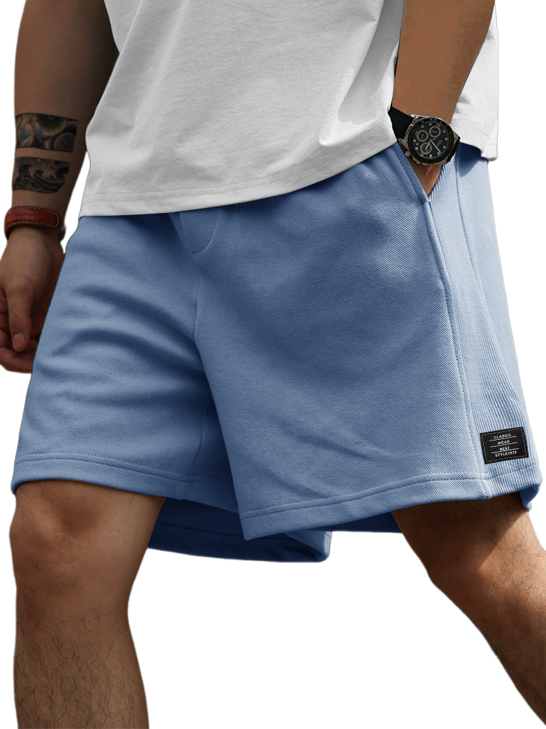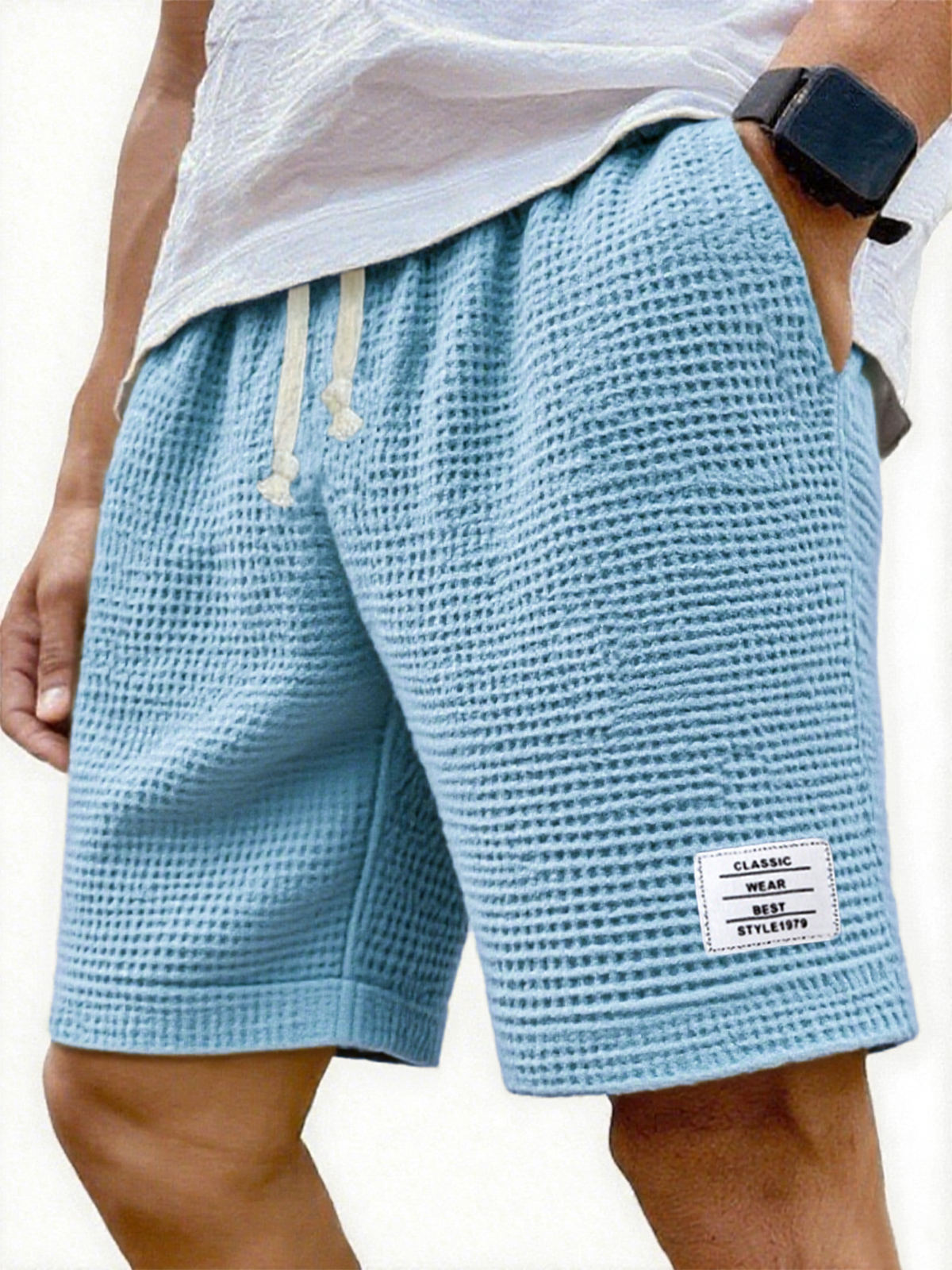 Men's Waffle Stylish Casual Lace-Up Everyday Shorts with Embroidered Label