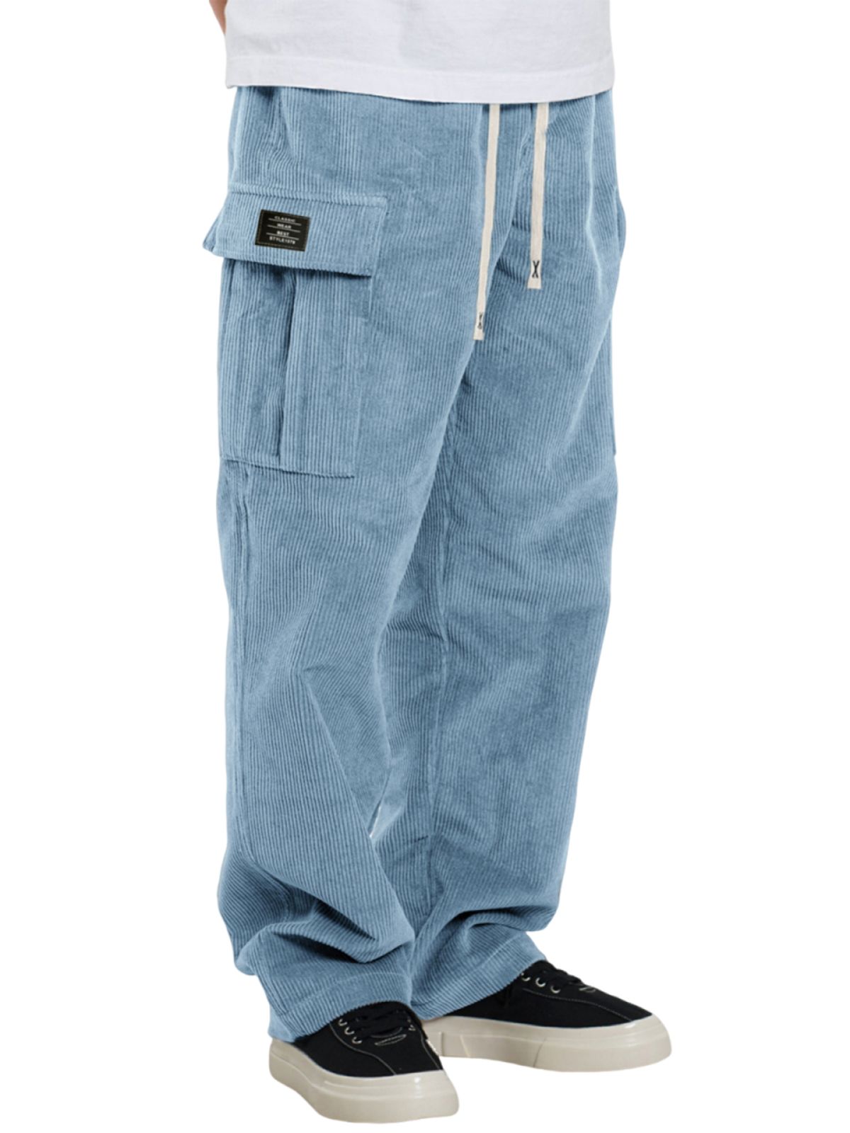 Men's Fashion Casual Outdoor Workwear Pocket Corduroy Fabric Drawstring Loose Trousers
