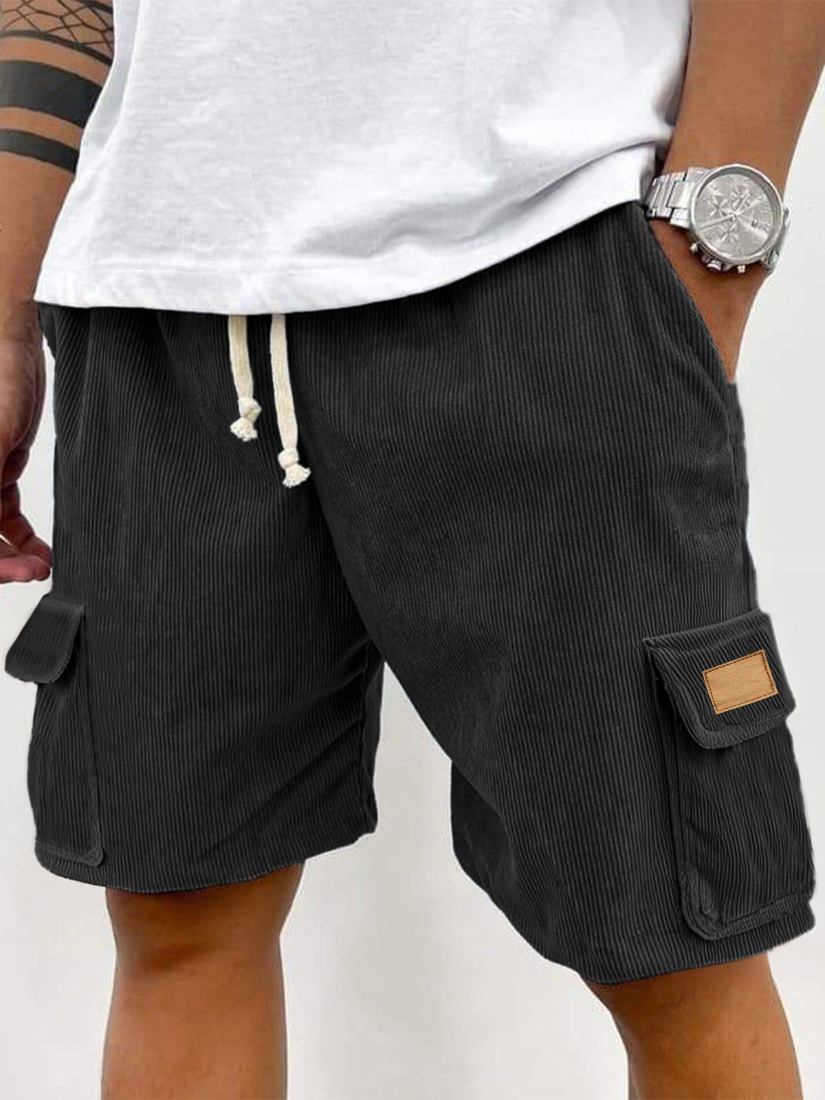 Men's Corduroy Multi-pocket Embroidered Label Loose Lace-up Shorts