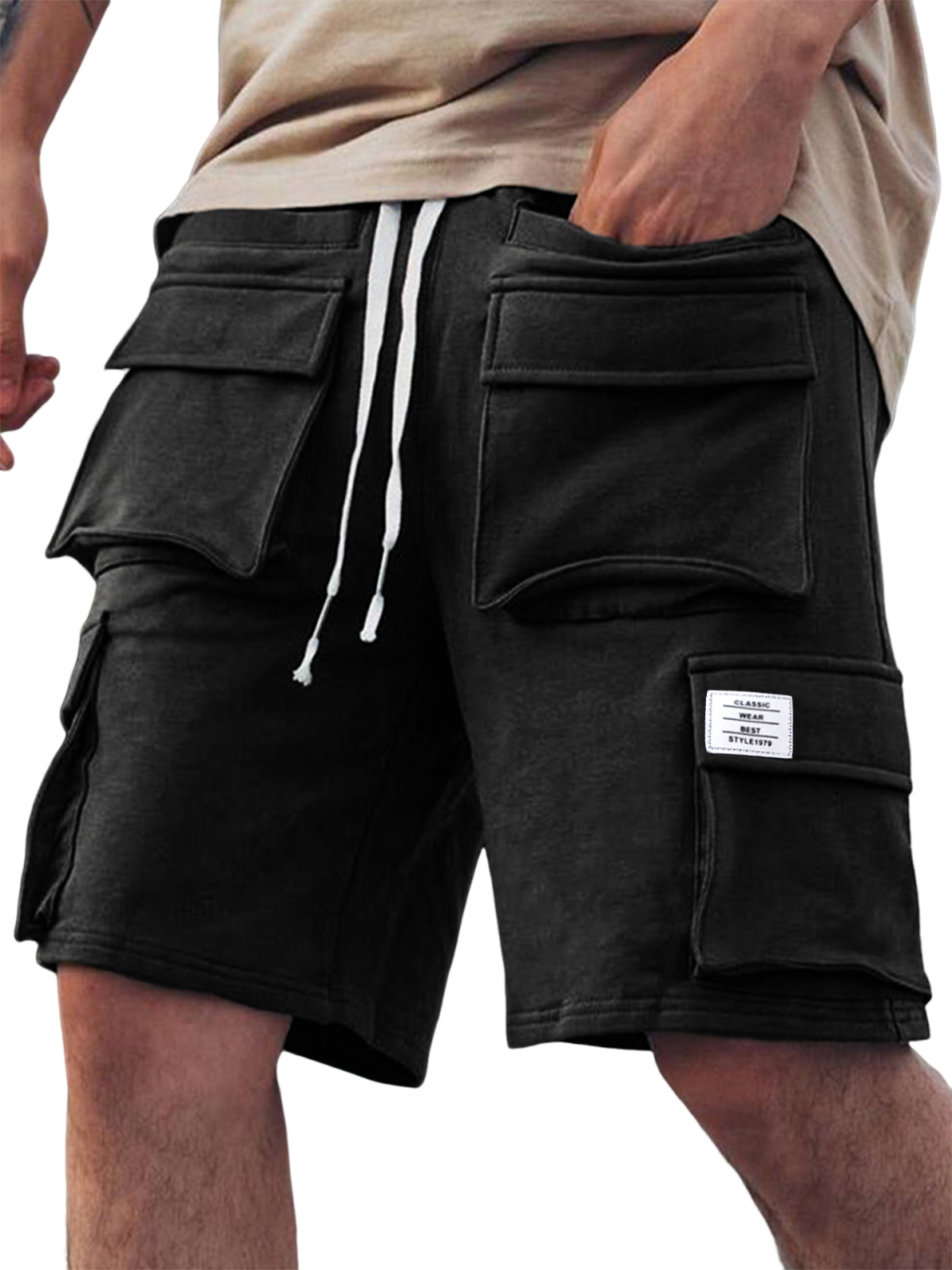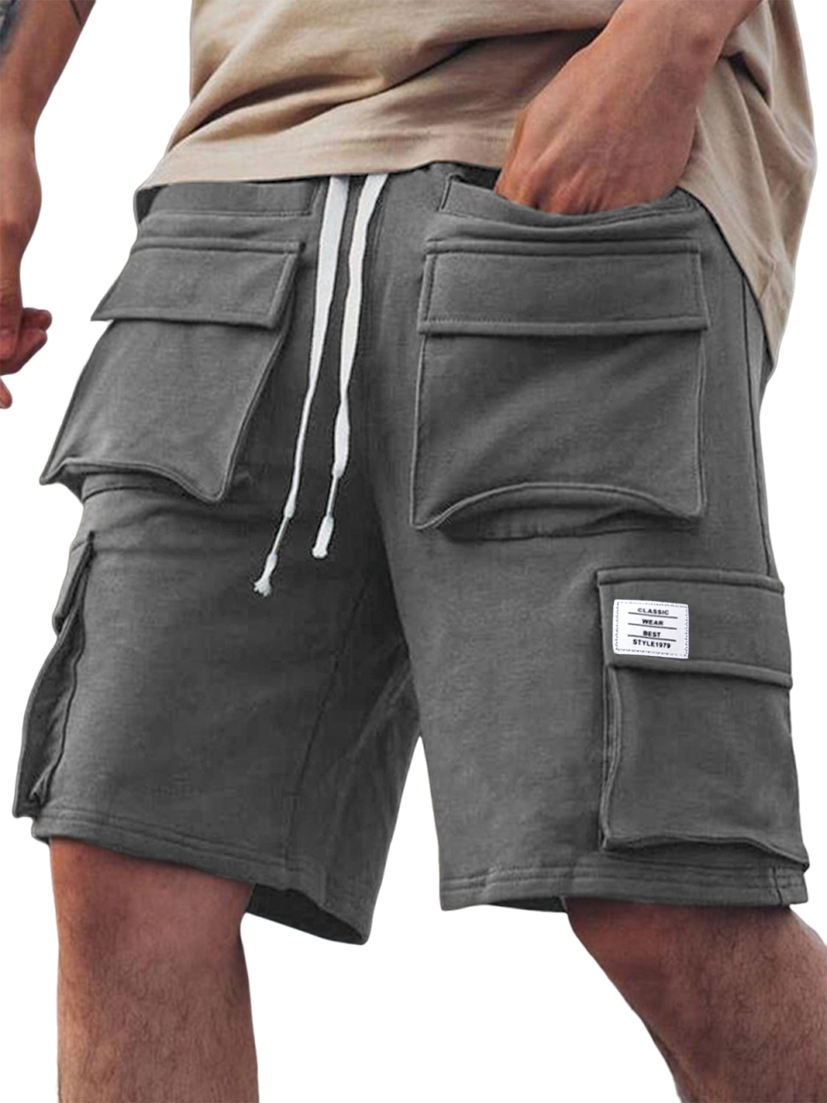 Men's Fashion Retro Outdoor Workwear Pocket Elastic Waist Drawstring Shorts