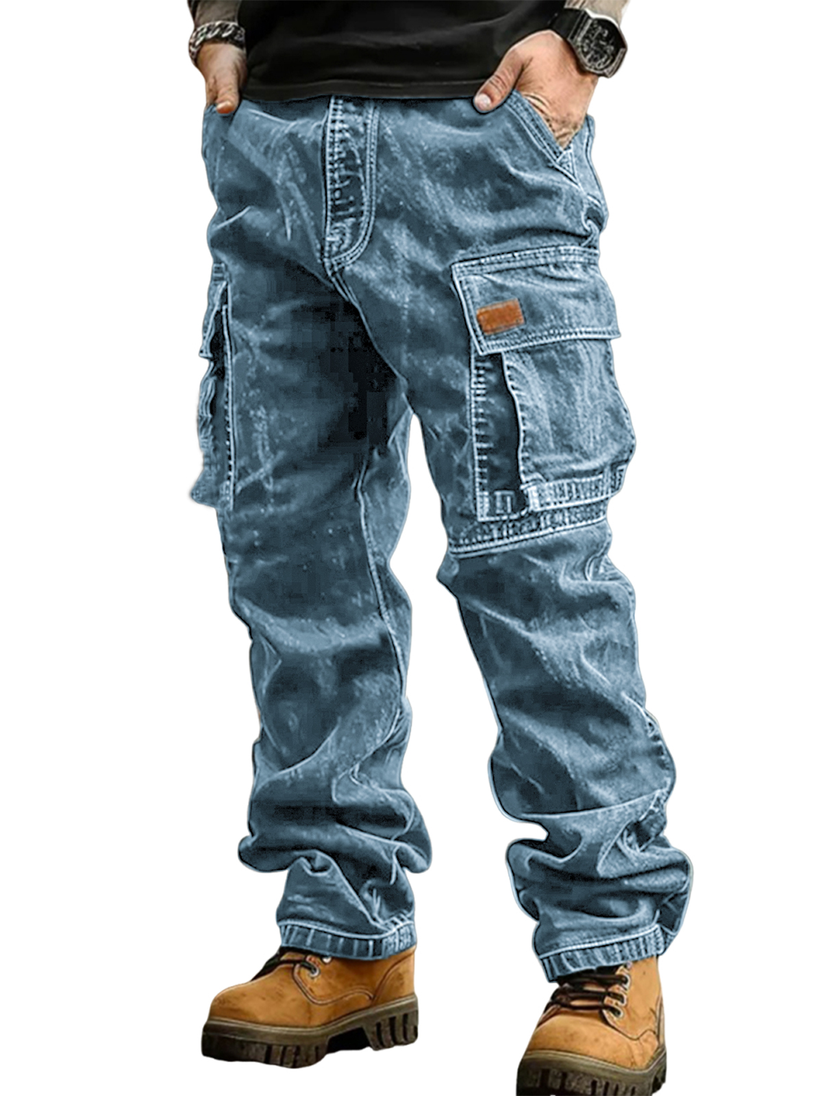 Men's Vintage Outdoor Distressed Cargo Multi-pocket Casual Pants with Leather Embroidered Label