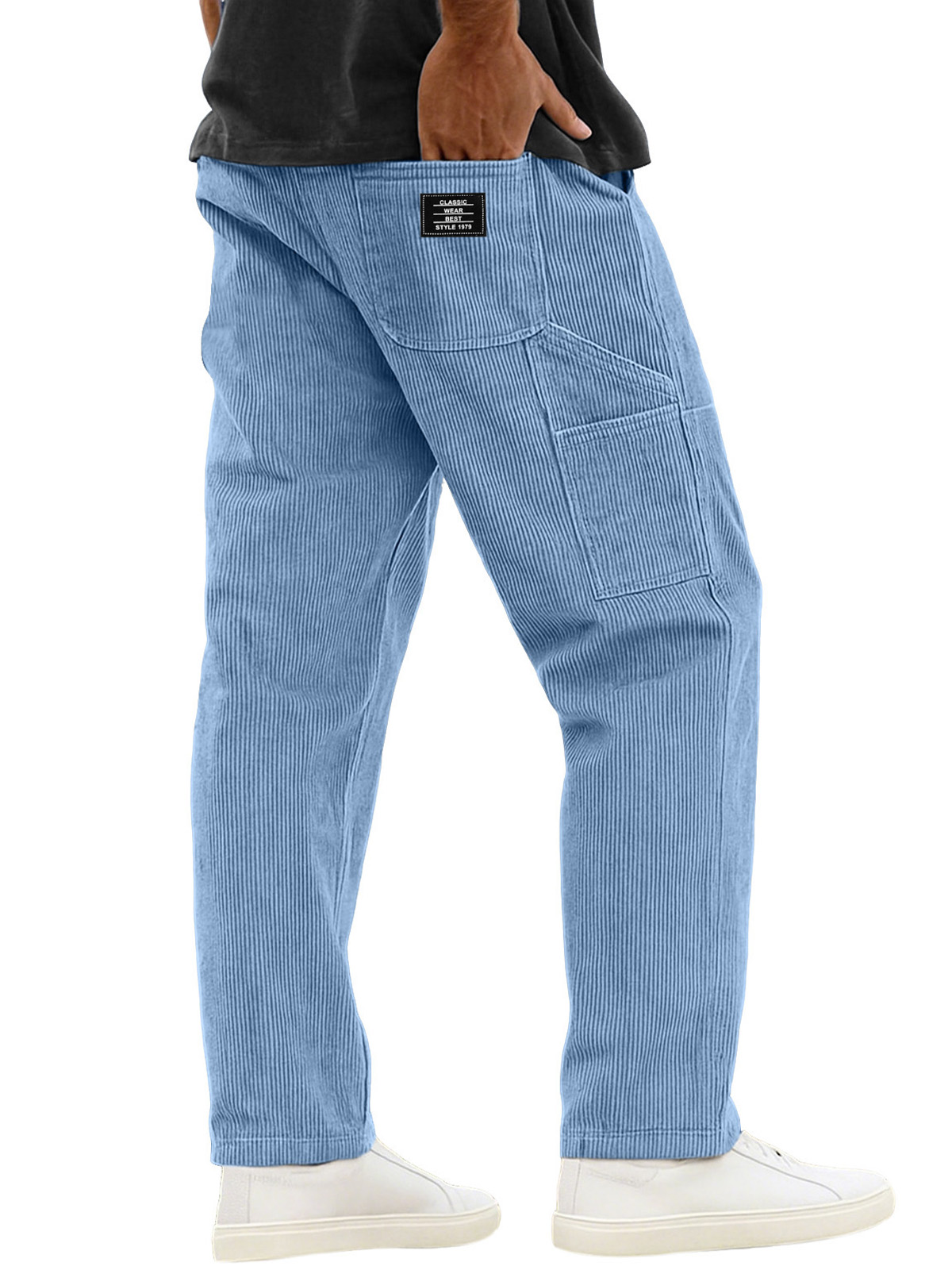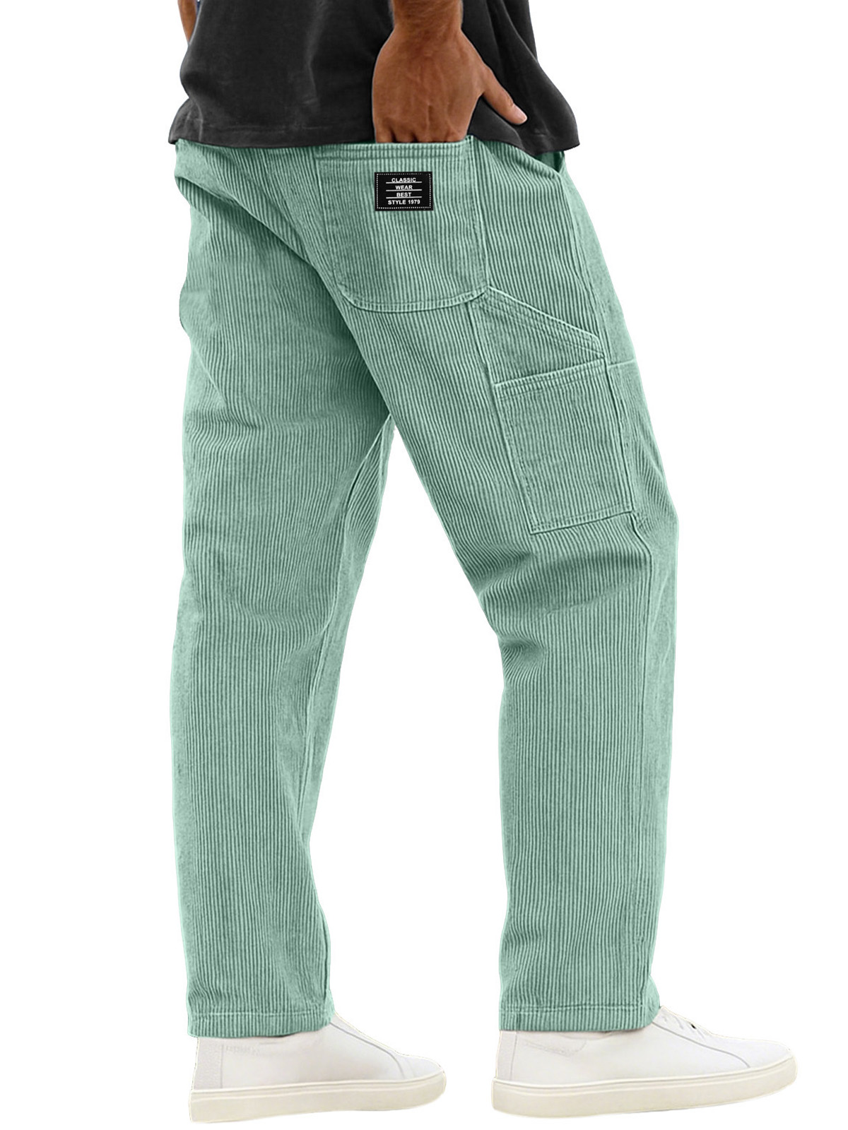 Men's Vintage Corduroy Pocket Embroidered Logo Casual Solid Color Trousers