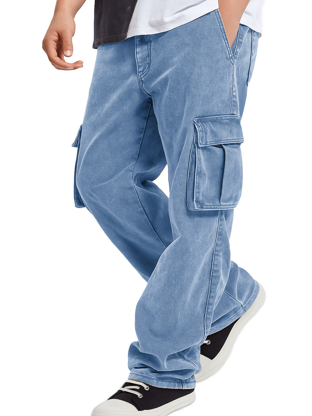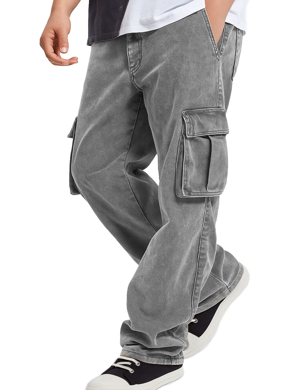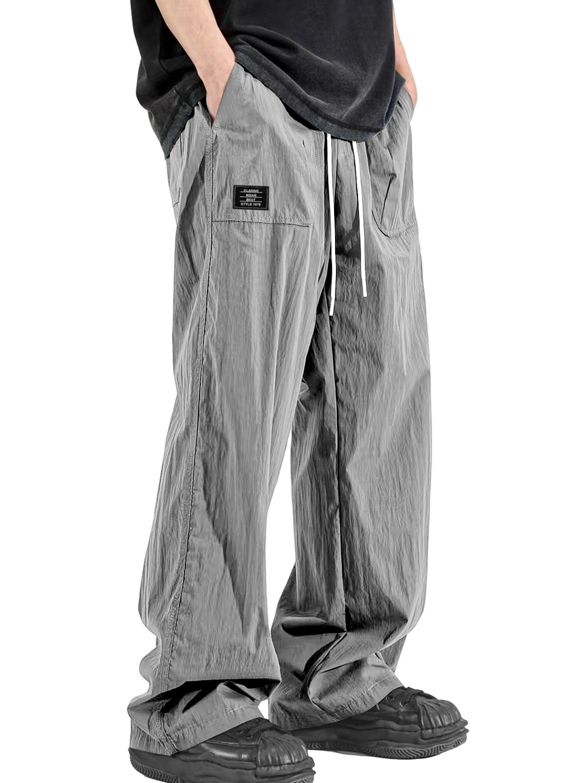 Men's Fashion Retro Outdoor Sports Workwear Pocket Elastic Waist Drawstring Loose Trousers