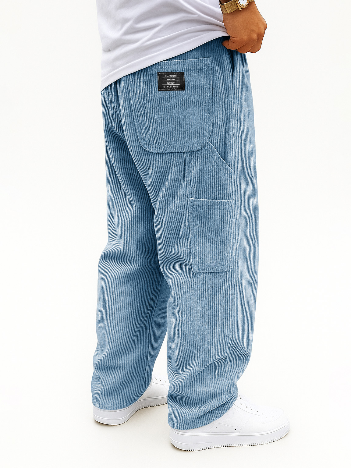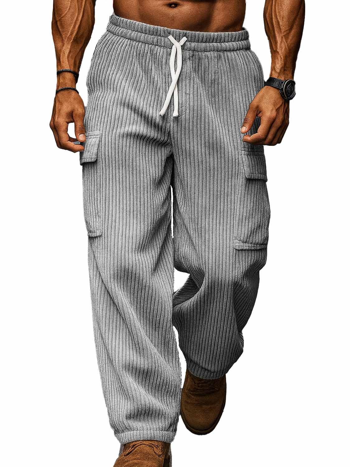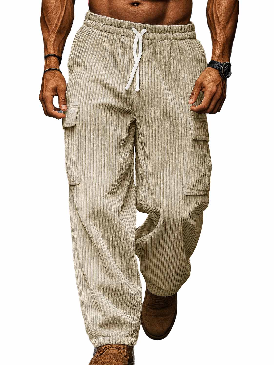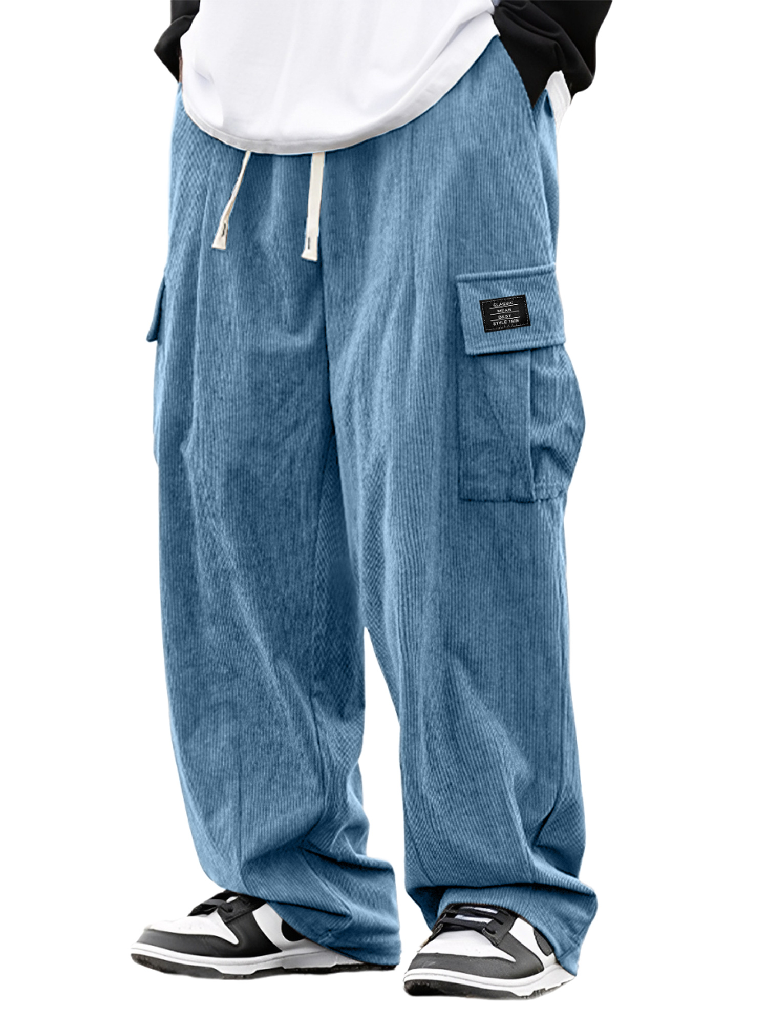 Men's Fashion Casual Workwear Pocket Corduroy Fabric Drawstring Loose Trousers