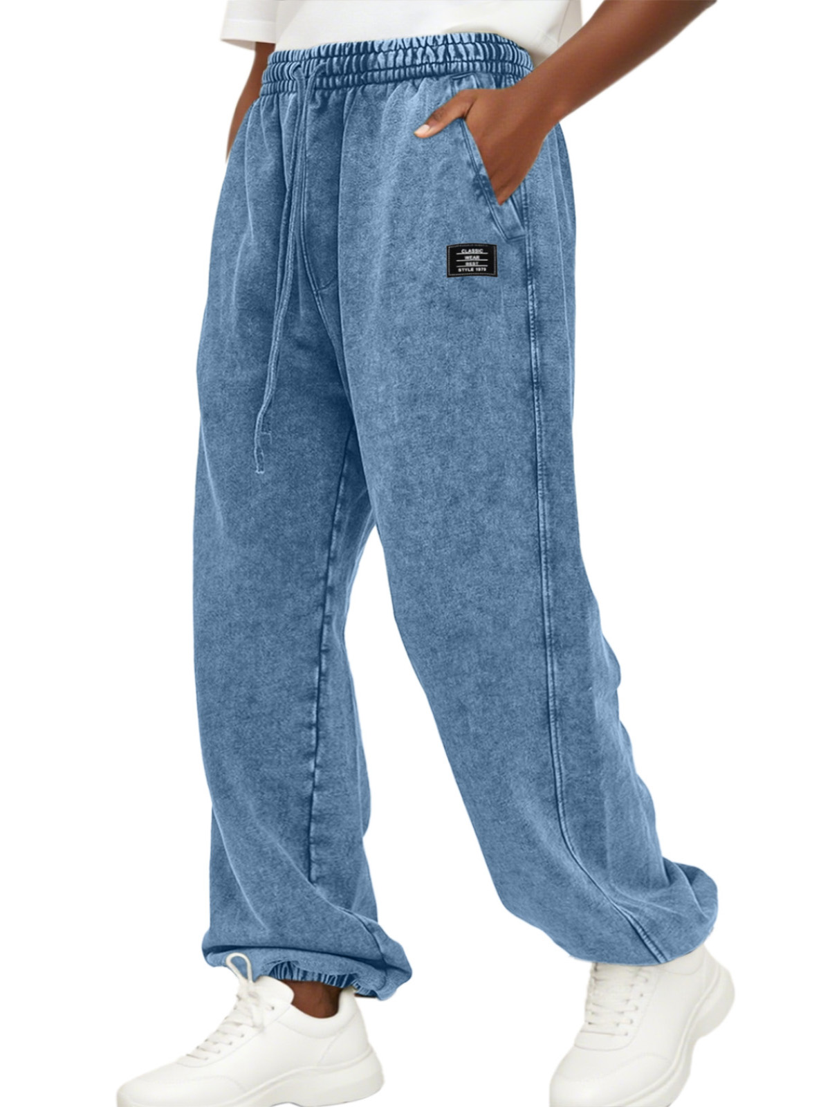 Men's Vintage Comfort Linen Drawstring Casual Pants with Embroidered Label
