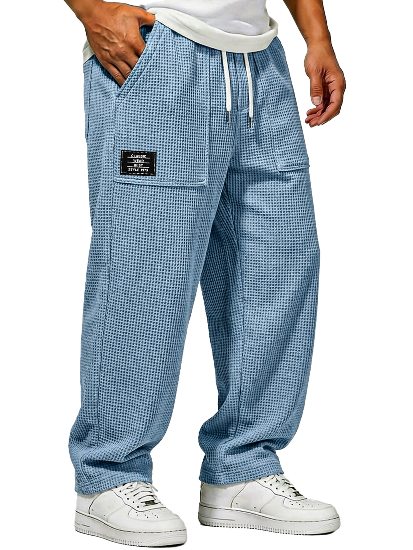 Men's Waffle-knit Casual Loose-fitting Trousers With Patch Pockets And Embroidered Logo