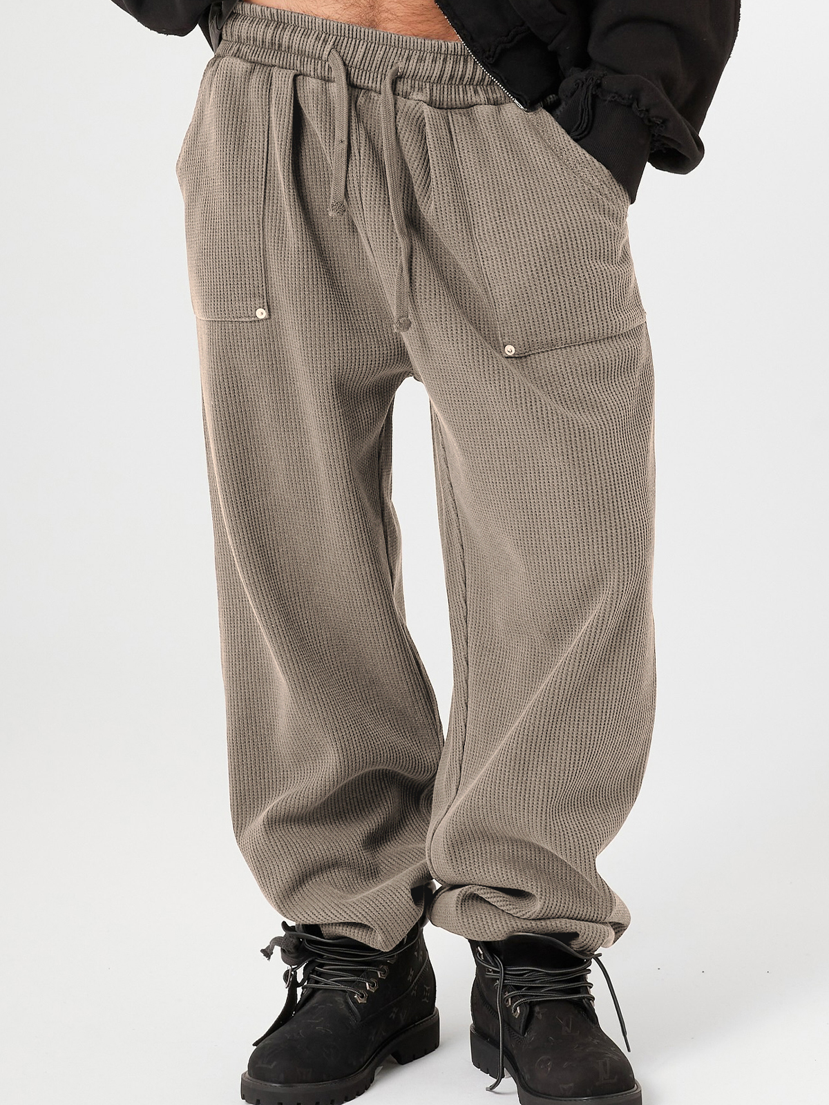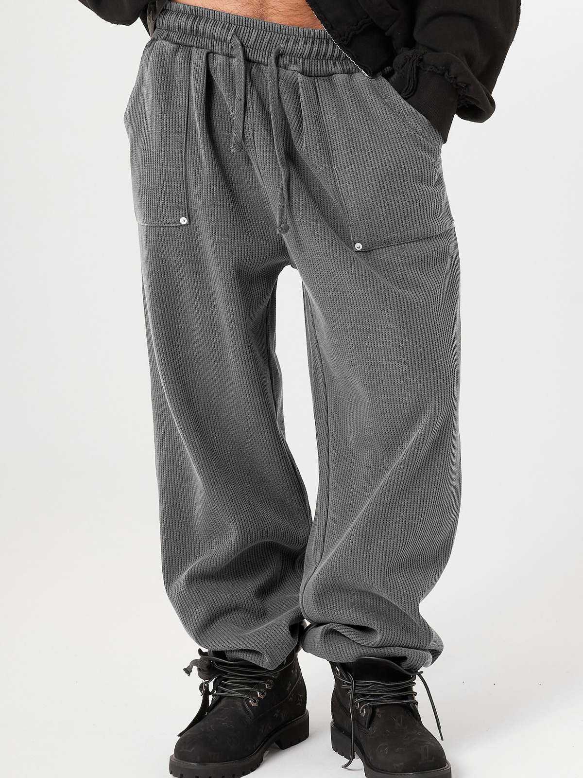 Men's Stylish Waffle-Knit Patchwork Design Baggy Pants