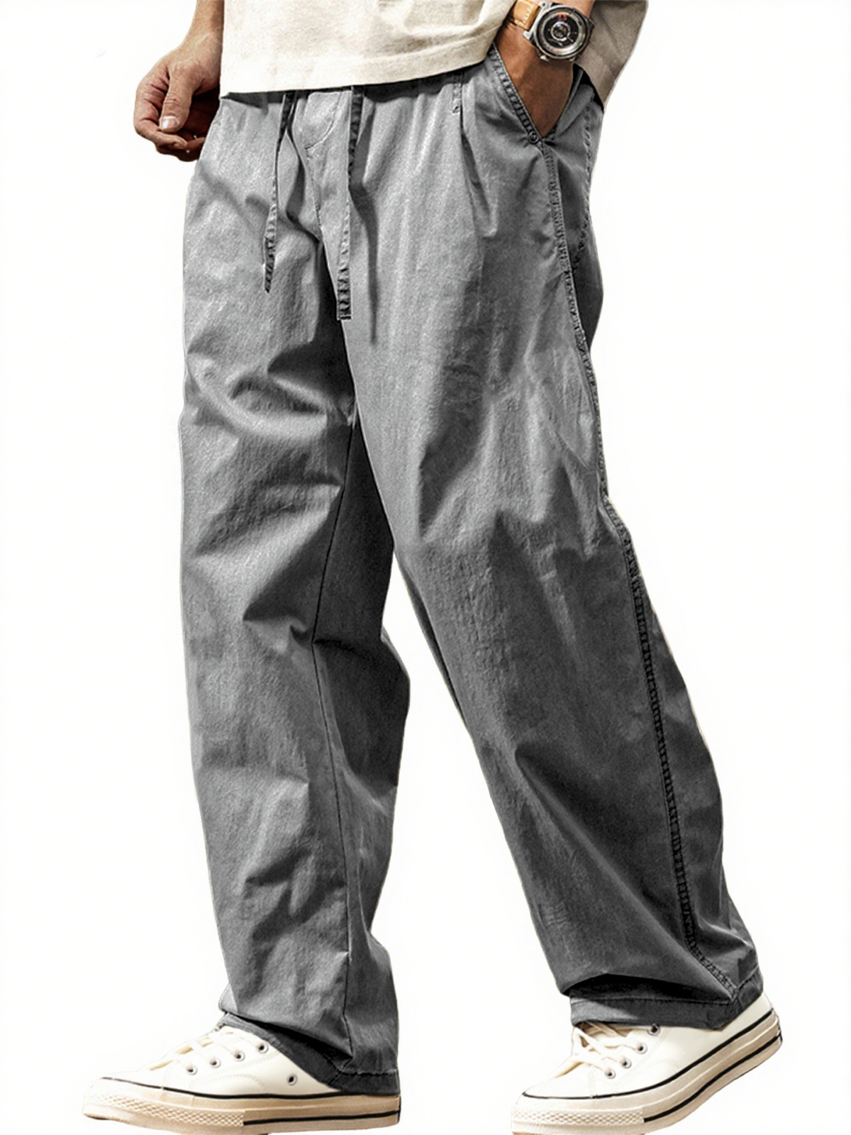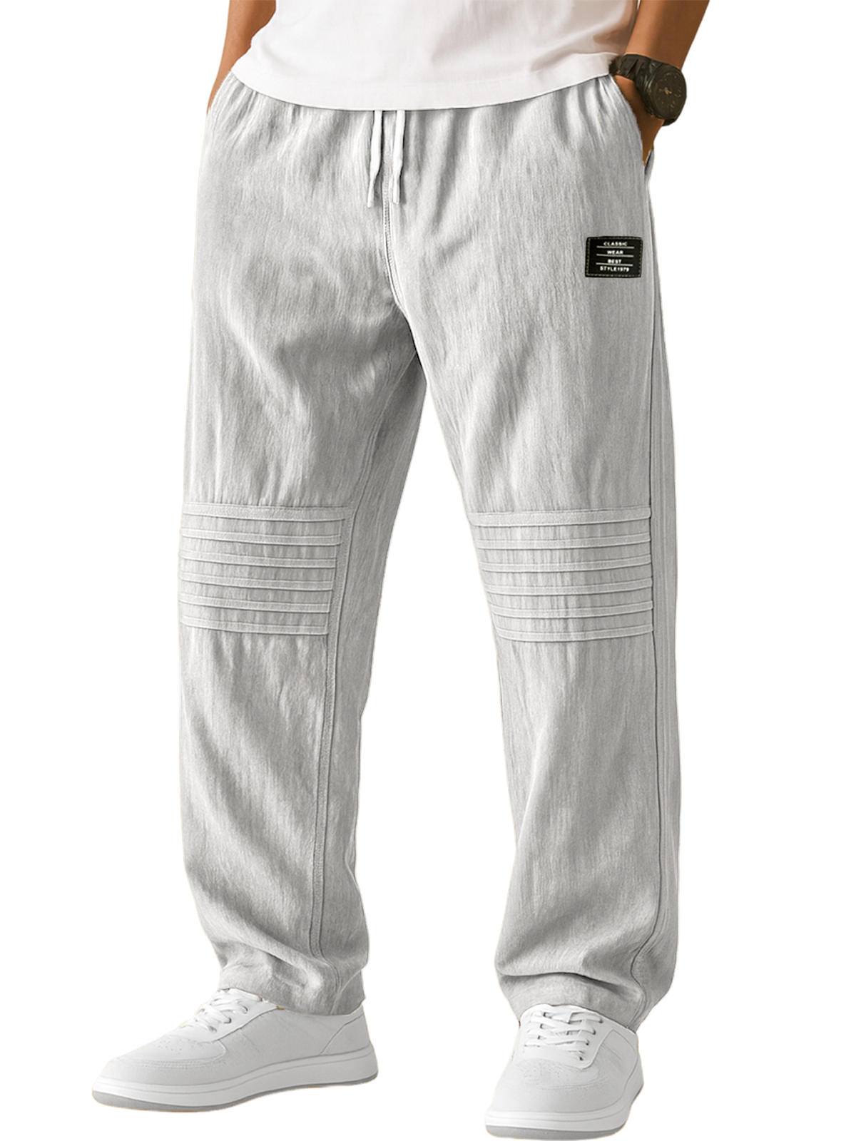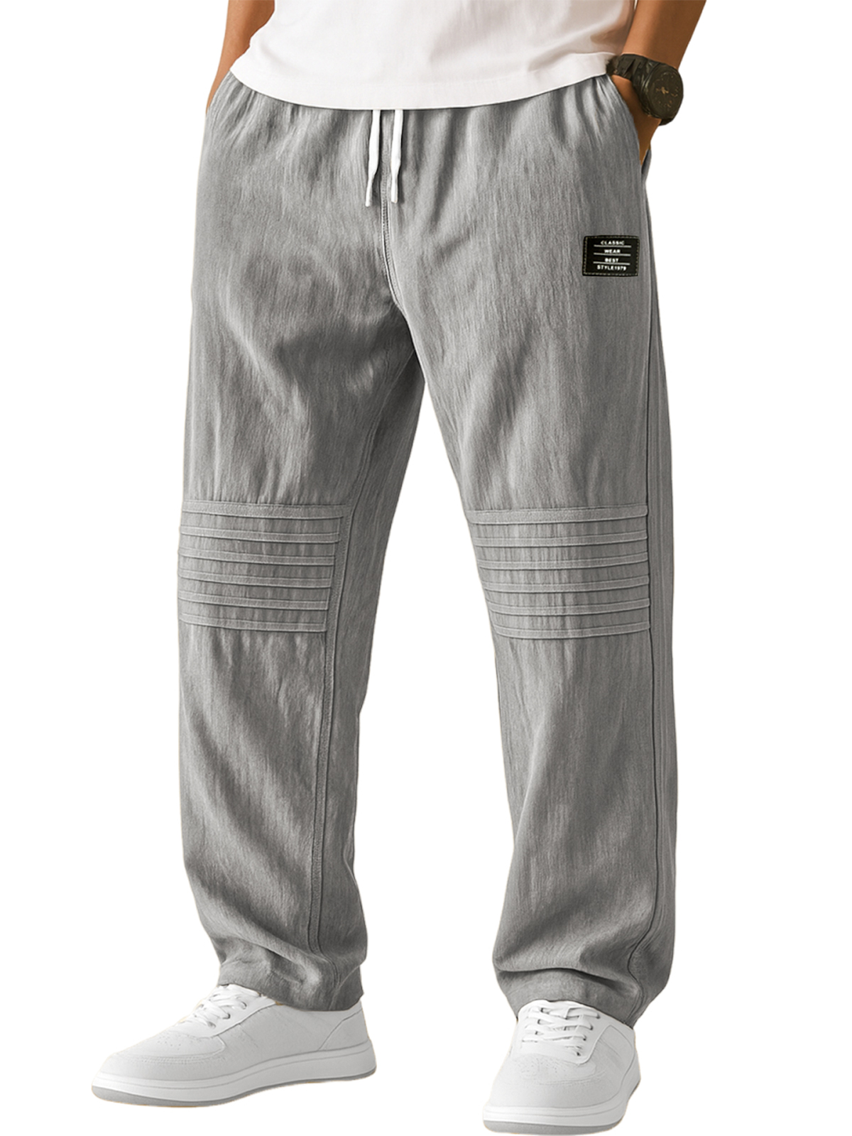 Men's Stylish Casual Loose-fitting Textured Fabric Pants With Pockets And Drawstrings And An Elastic Waistband
