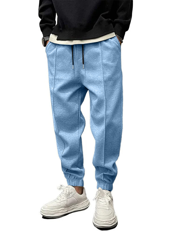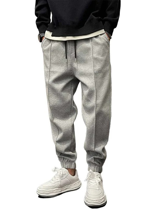 Men's Fashionable Casual Suede Fabric Loose-fitting Pocket Drawstring Elastic Trousers