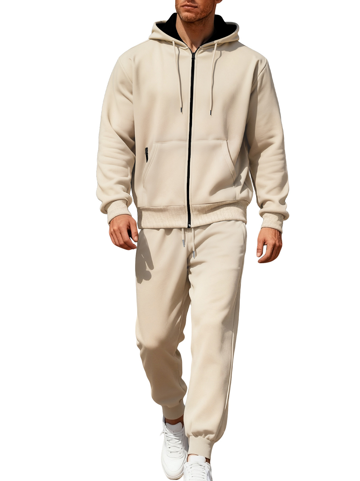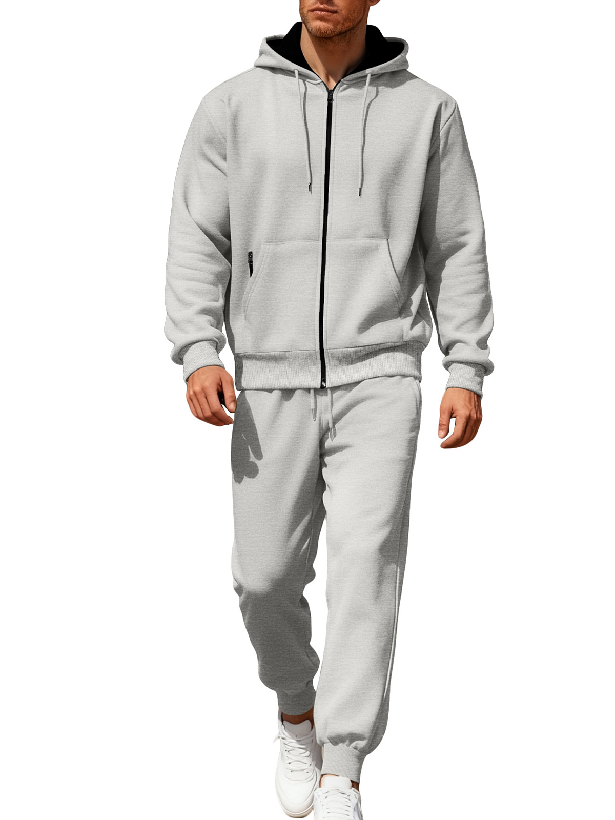 Men's Solid Color Hooded Fleece Warm and Comfortable Sports Casual Long-sleeved Trousers Suit