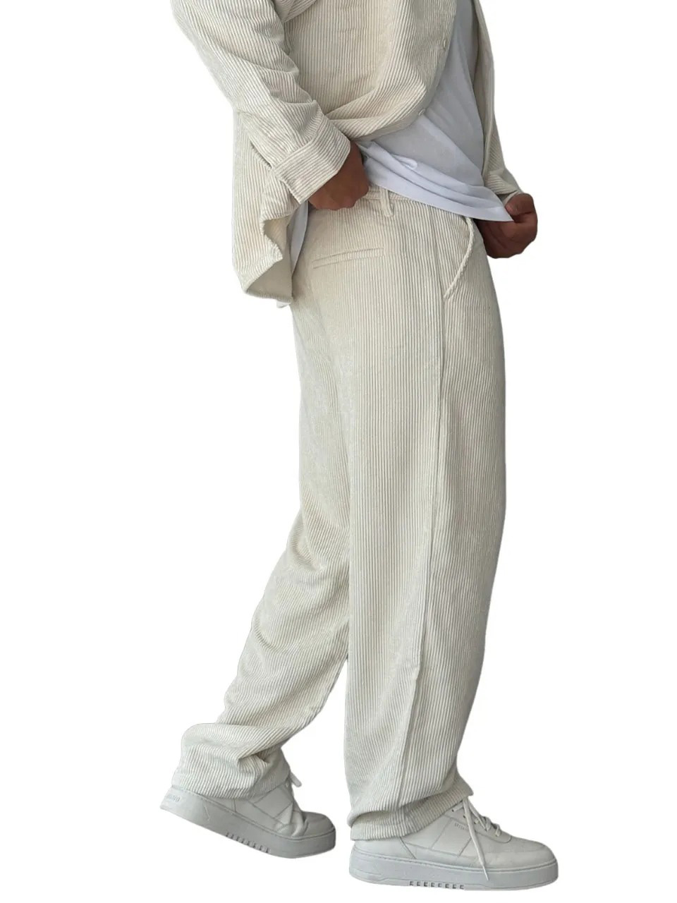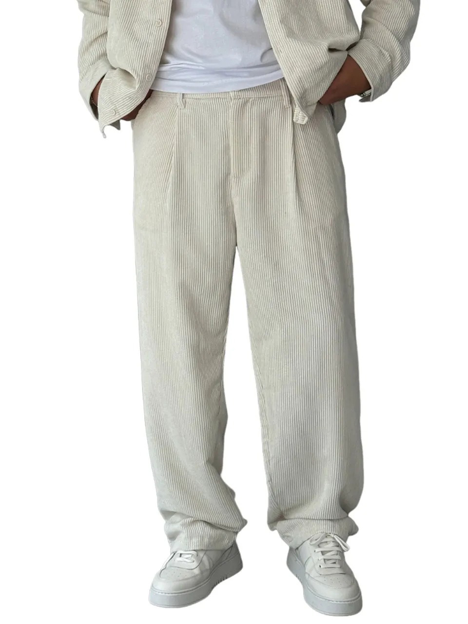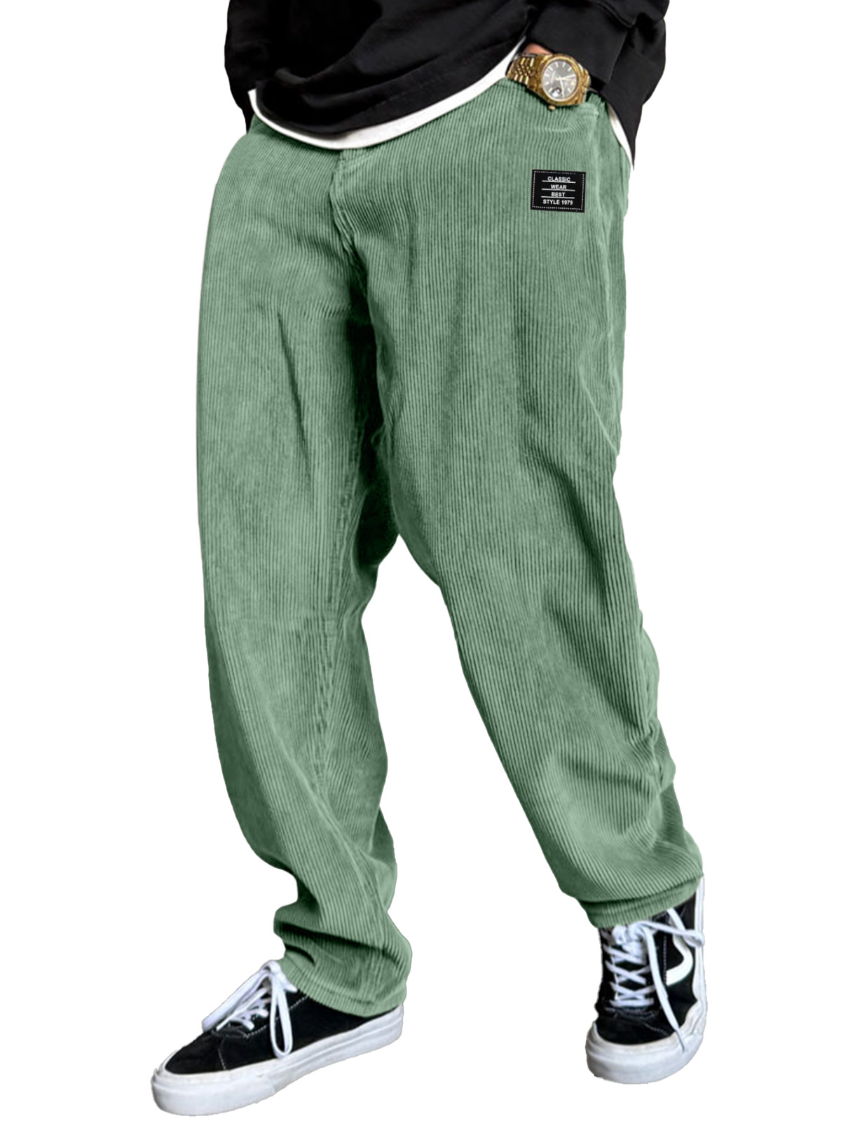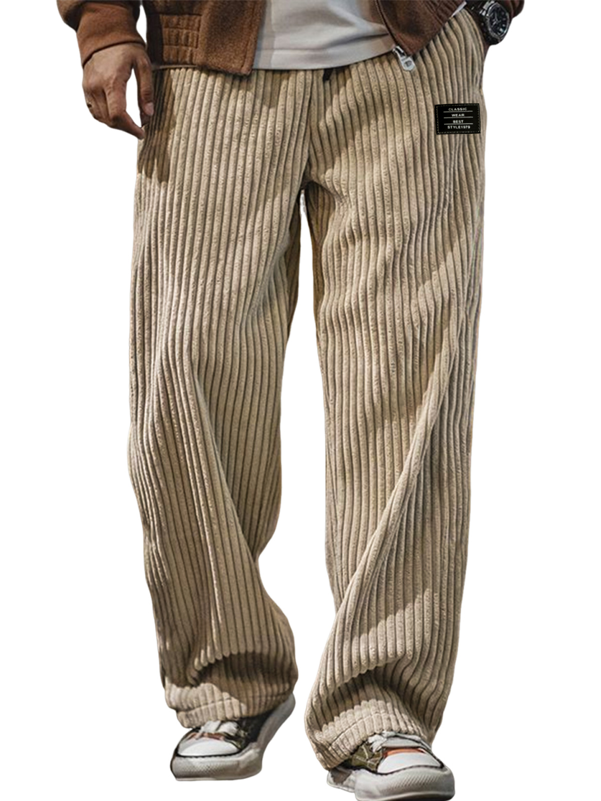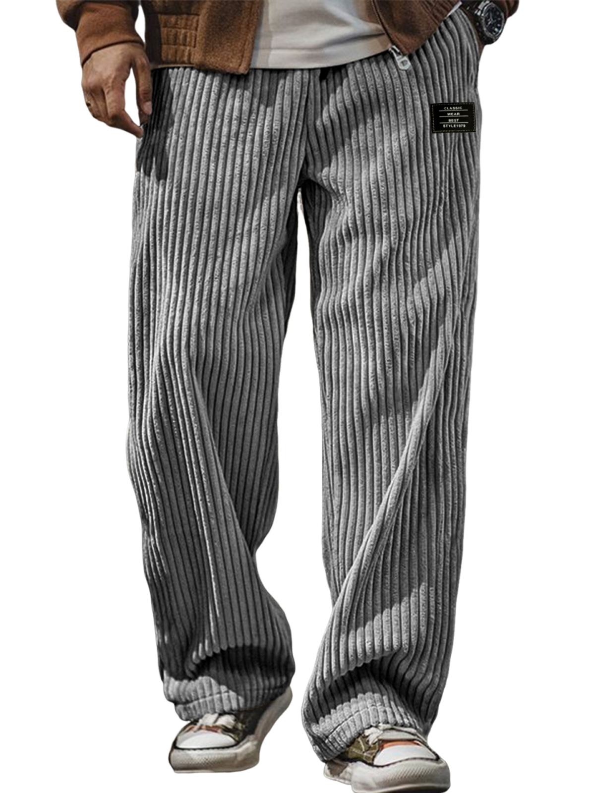 Men's Stylish Corduroy Ribbed Trousers with Embroidered Label