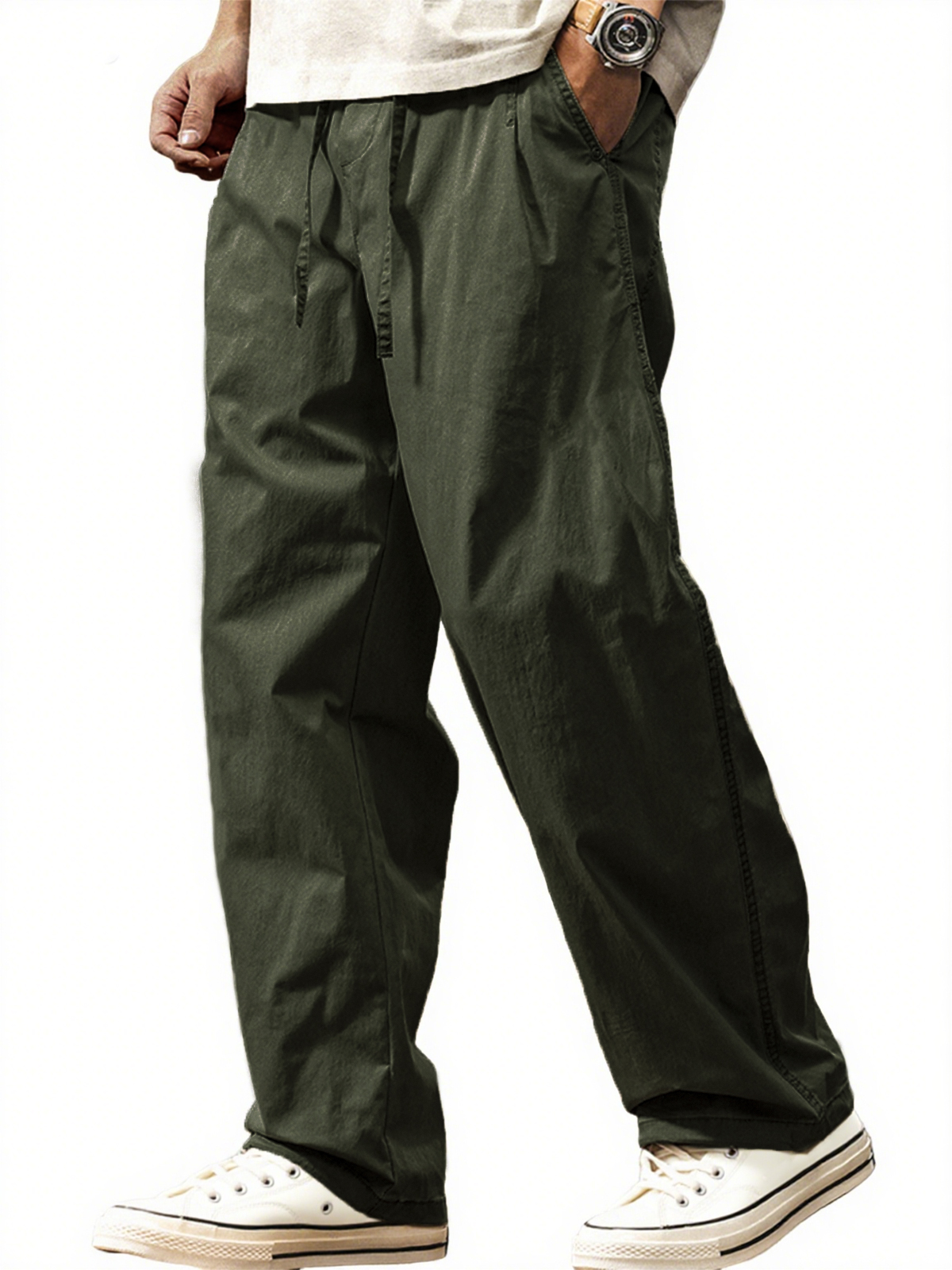 Men's Comfortable Daily Straight Color Button Drawstring Casual Pants