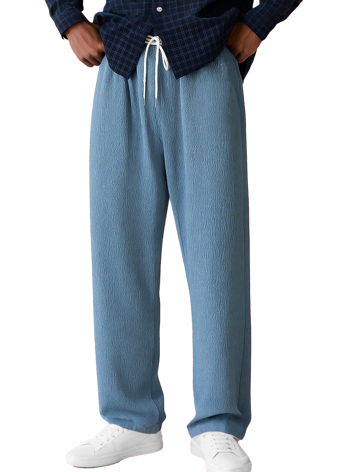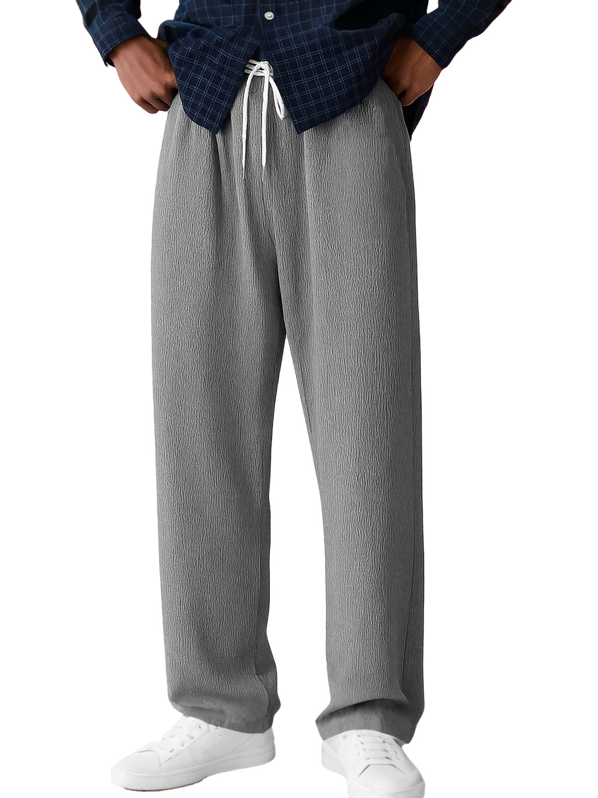 Men's Stylish Casual Bubble Crinkle Fabric Loose Drawstring Pocket Trousers
