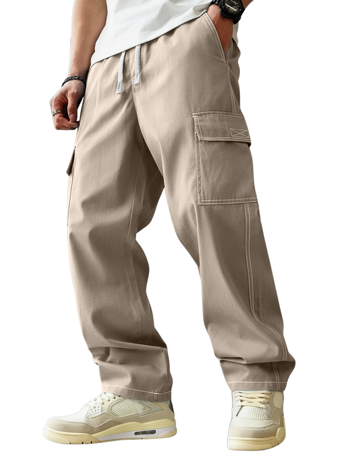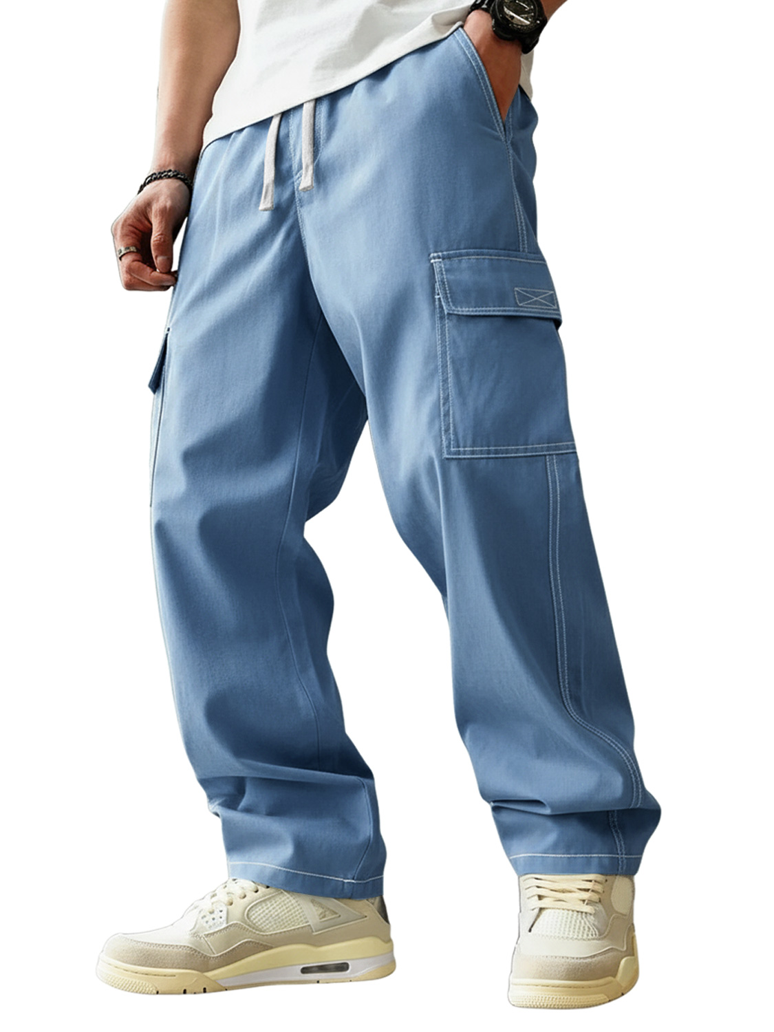 Men's Stylish Retro Outdoor Pocket Loose-fitting Drawstring Casual Trousers