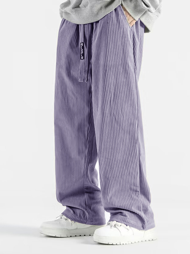 Fashionable And Casual Solid Color Vertical Pit Stripe Loose Trousers