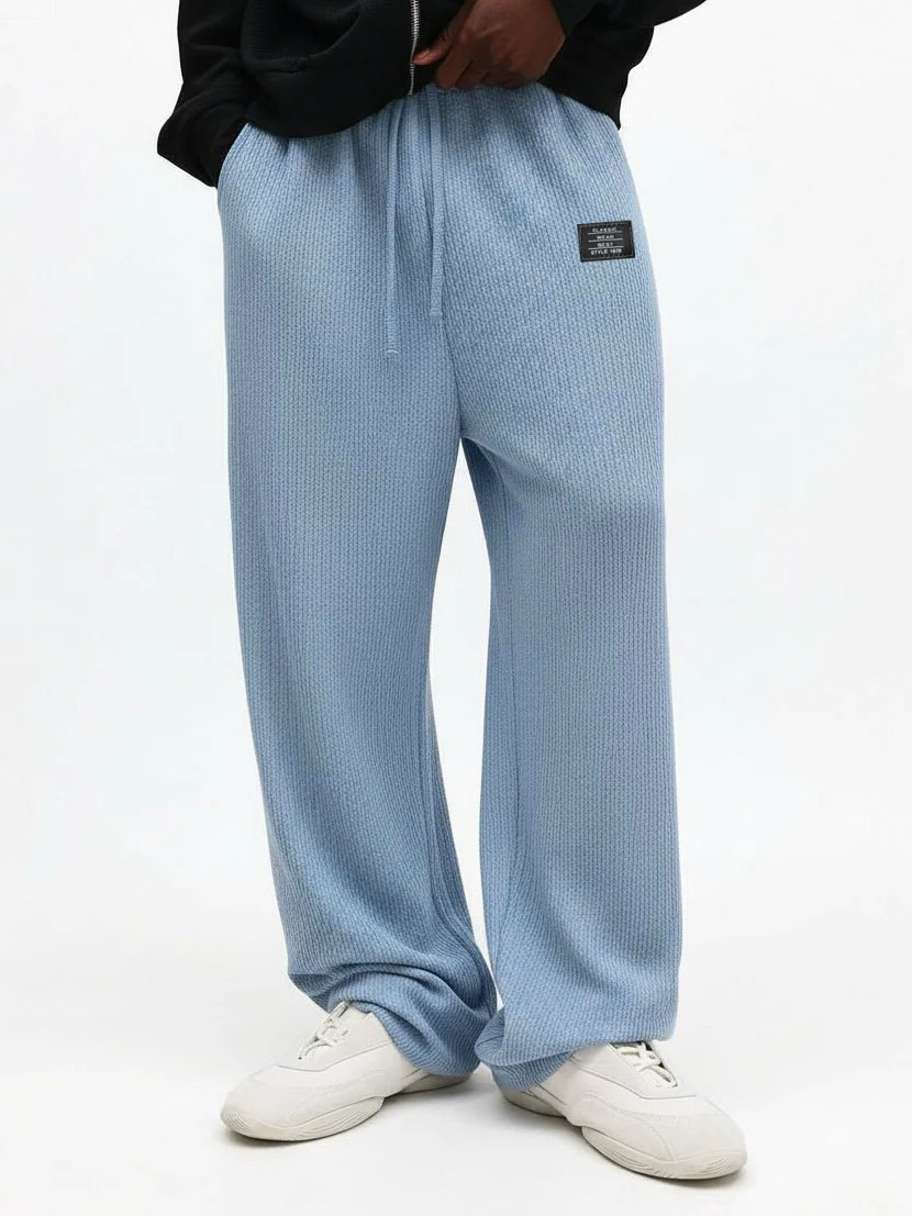 Men's Casual Retro Waffle Fabric Logo Trousers