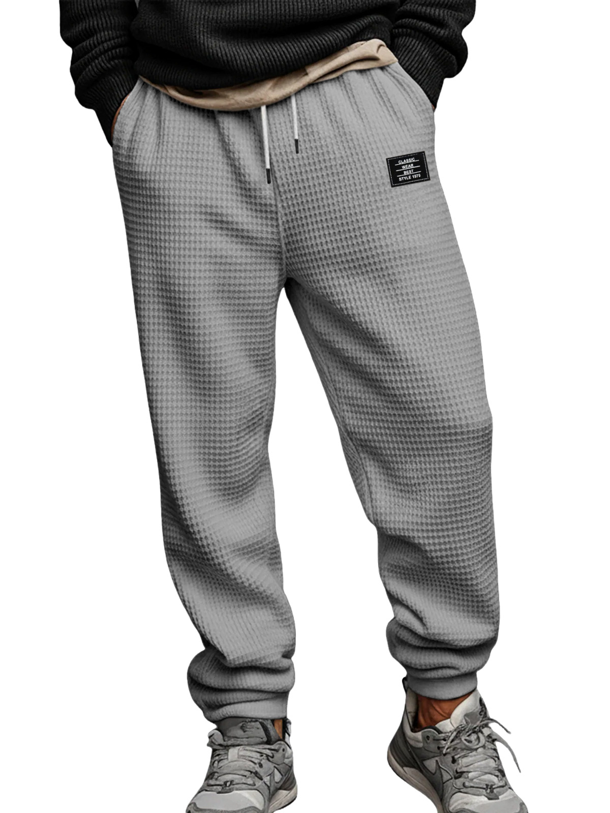 Men's Simple Solid Color Waffle Design Logo Fashion Casual Trousers