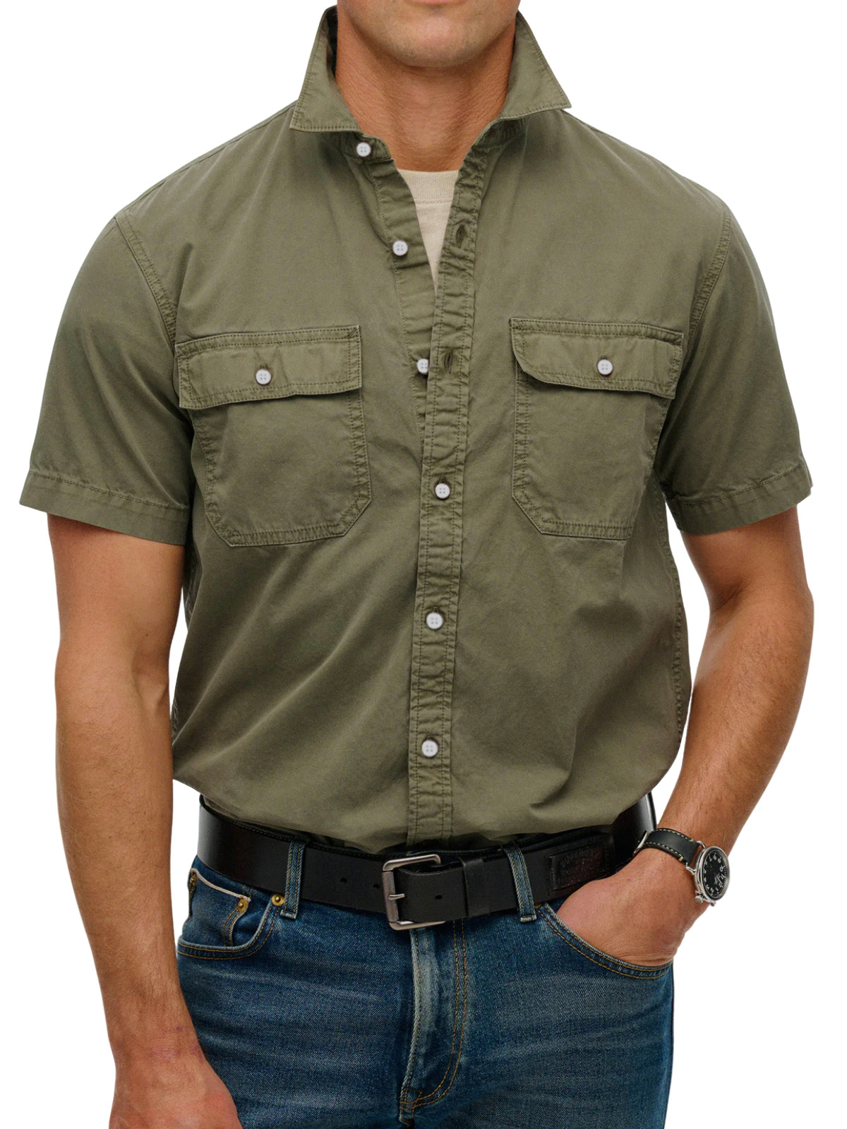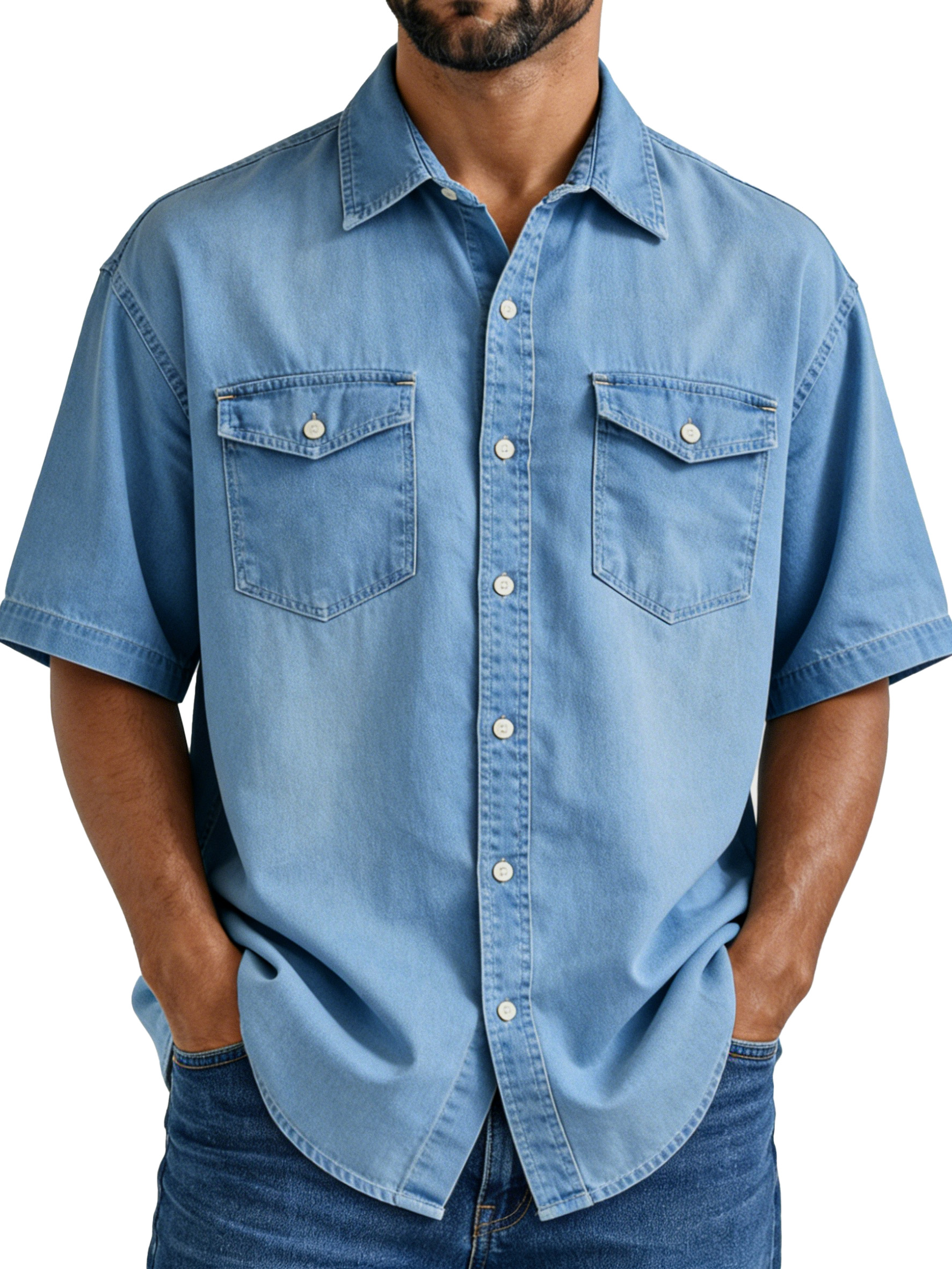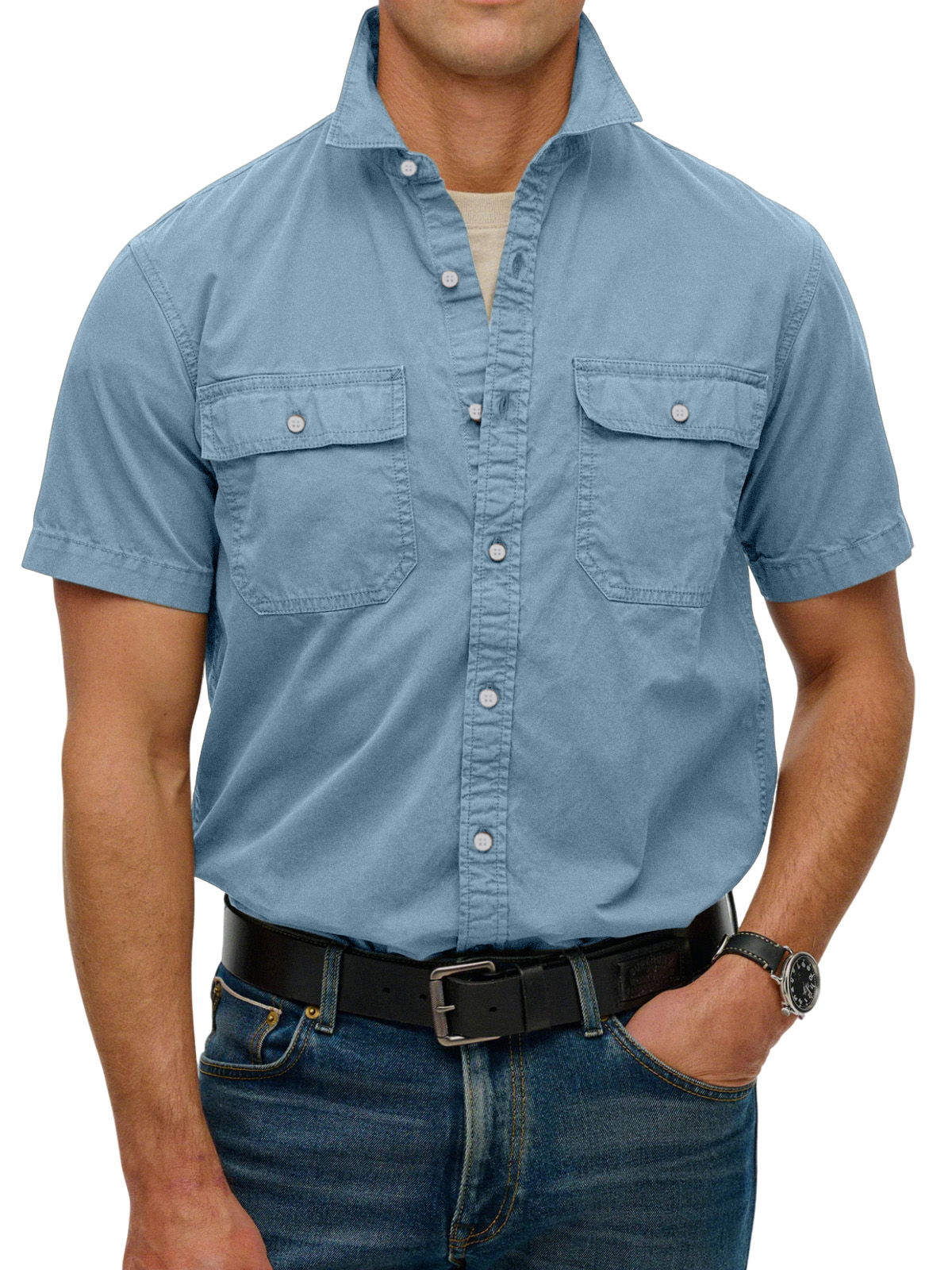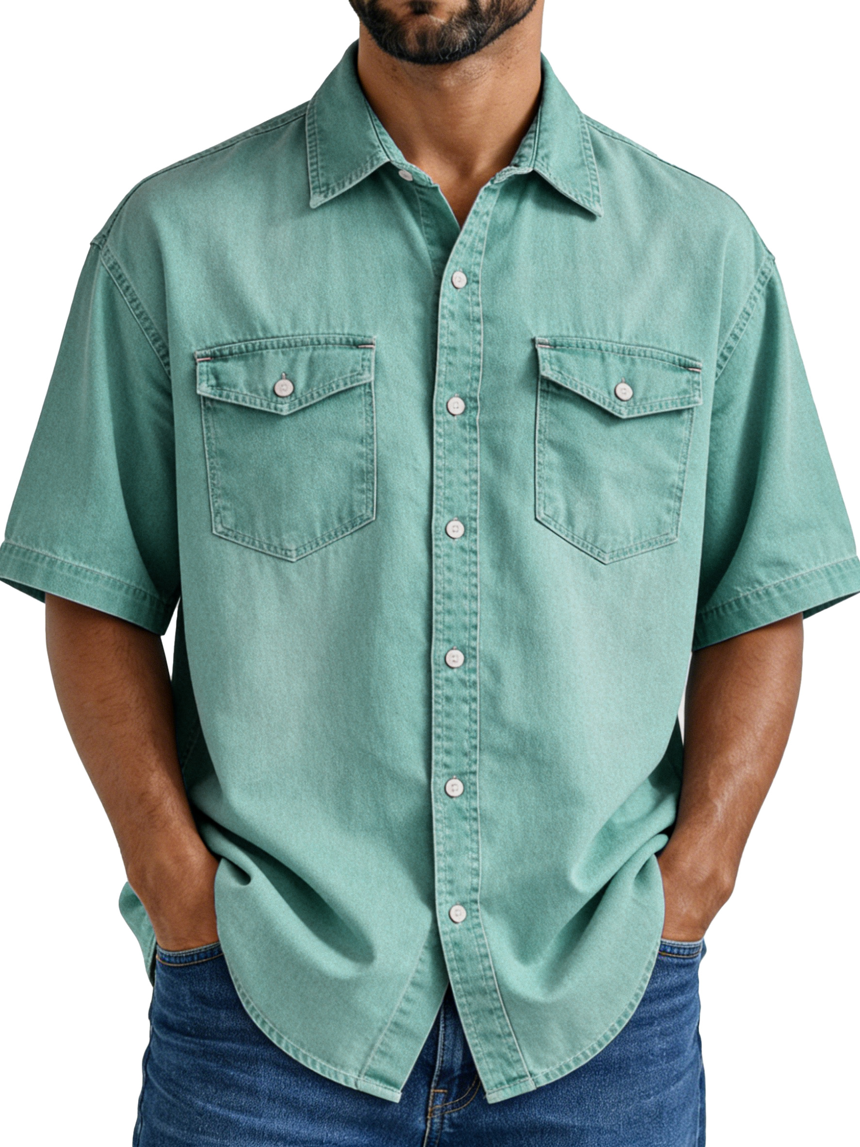 Men's Simple Vintage Double-pocket Lapel Button-down Short-sleeved Shirt