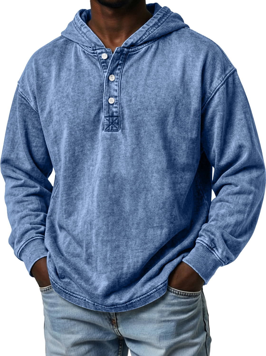 Men's Vintage Button-up Casual Long-sleeved Hooded Top