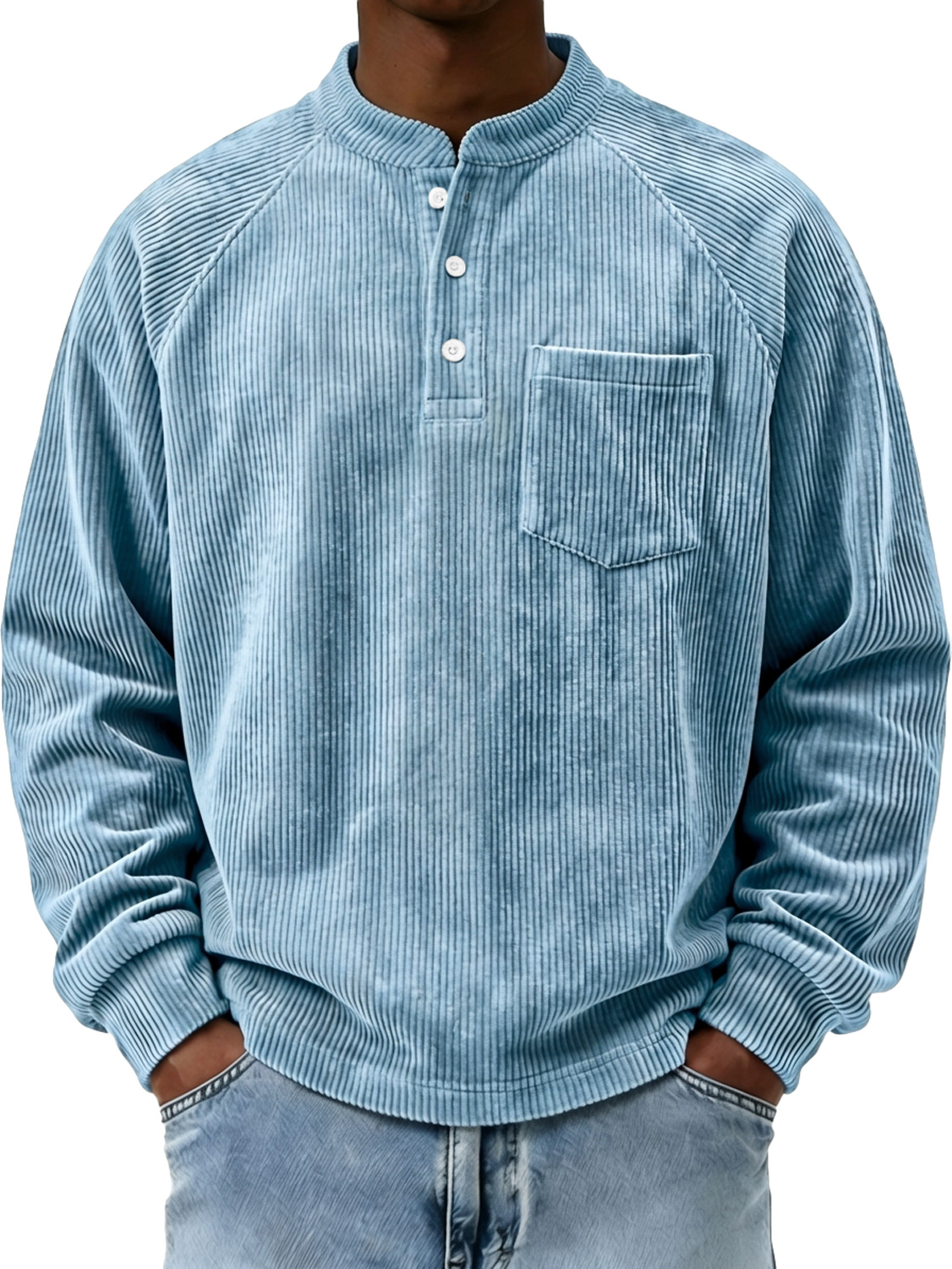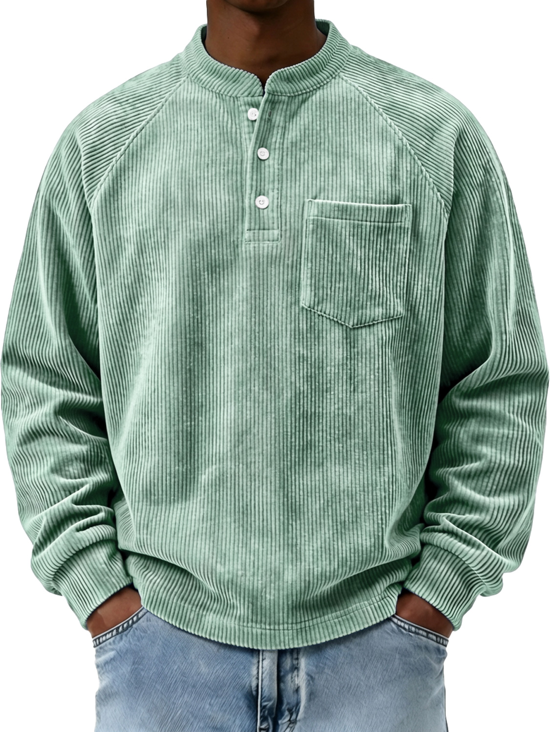 Men's Vintage Corduroy Button-down Long-sleeved Henley Shirt