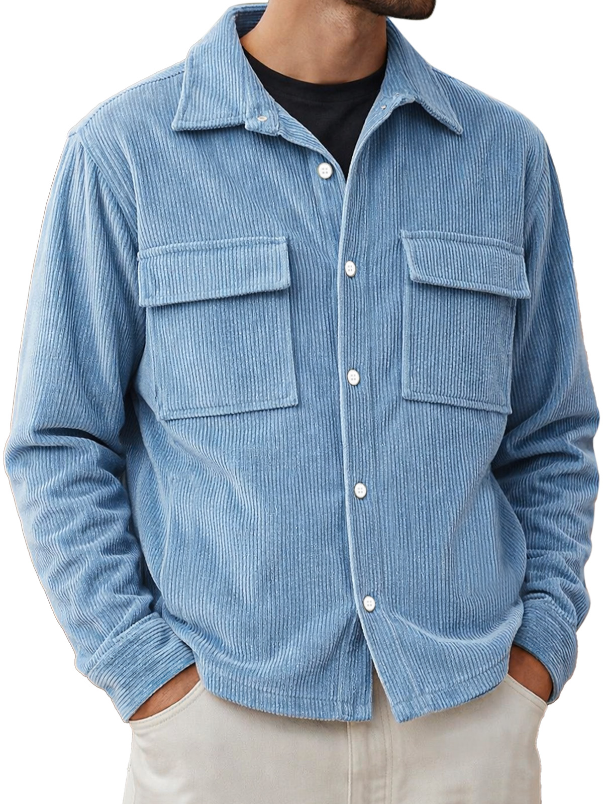 Men's Basic Double-pocket Corduroy Button-down Long-sleeved Shirt