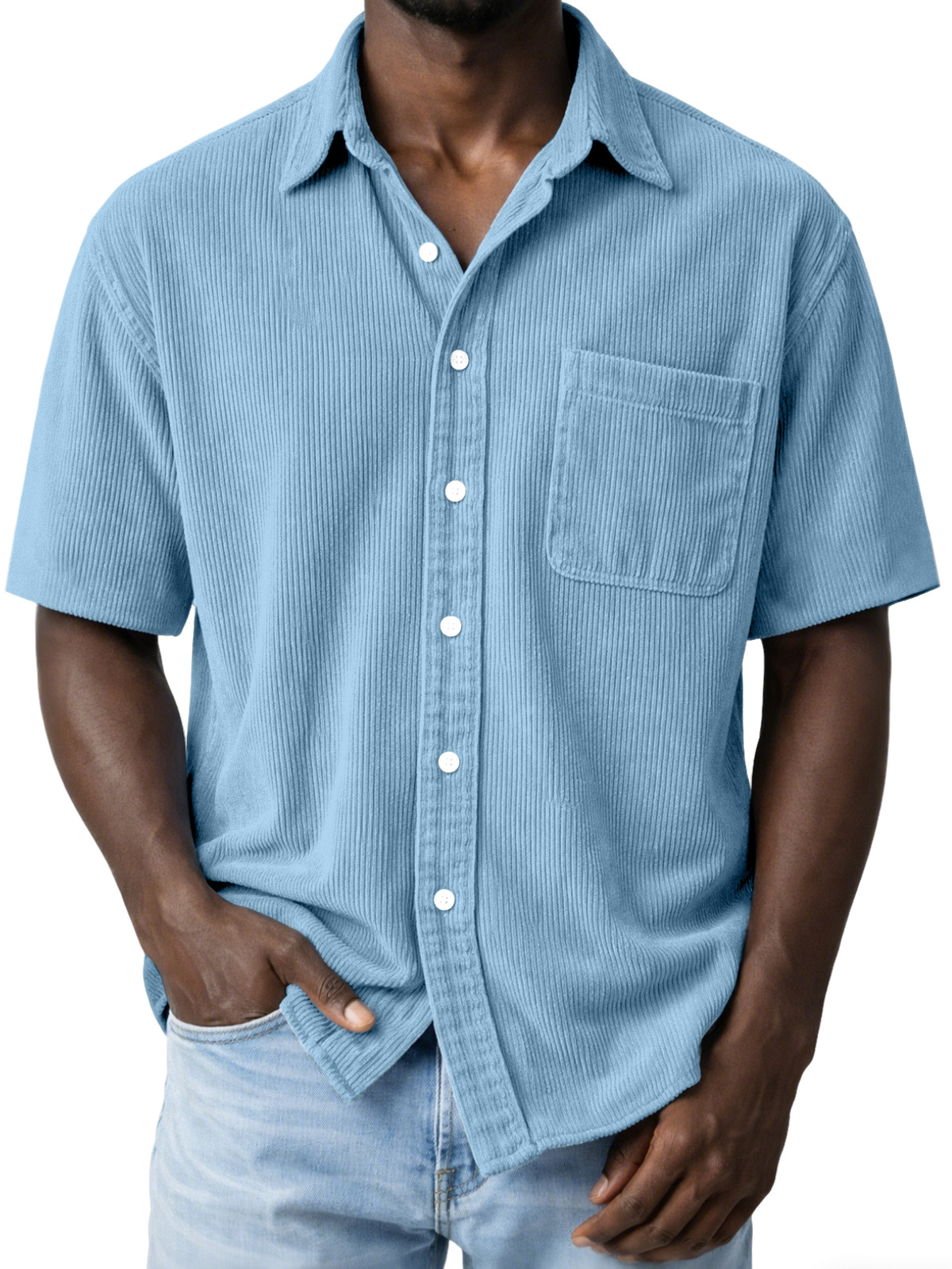 Men's vintage corduroy lapel button-down short-sleeved shirt with chest pocket