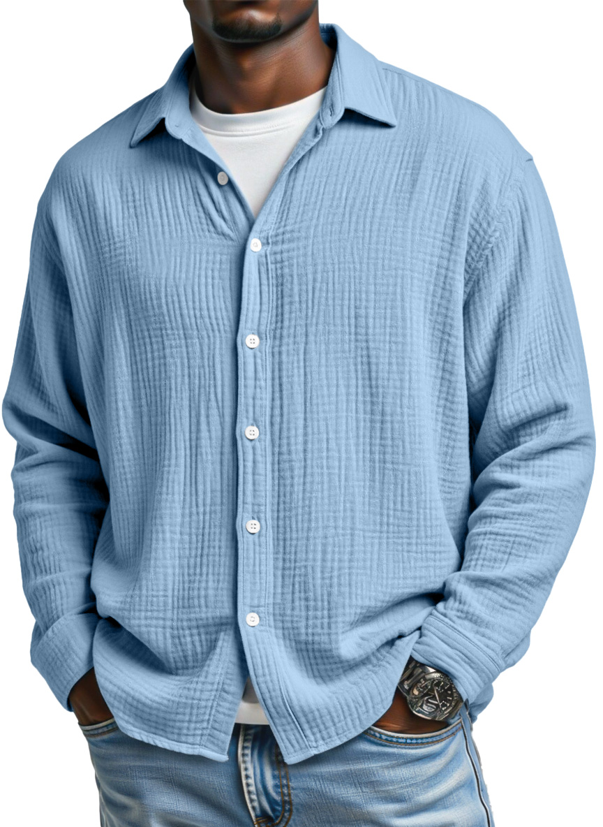 Men's Simple Breathable Pleated Cotton Long Sleeve Button Down Shirt