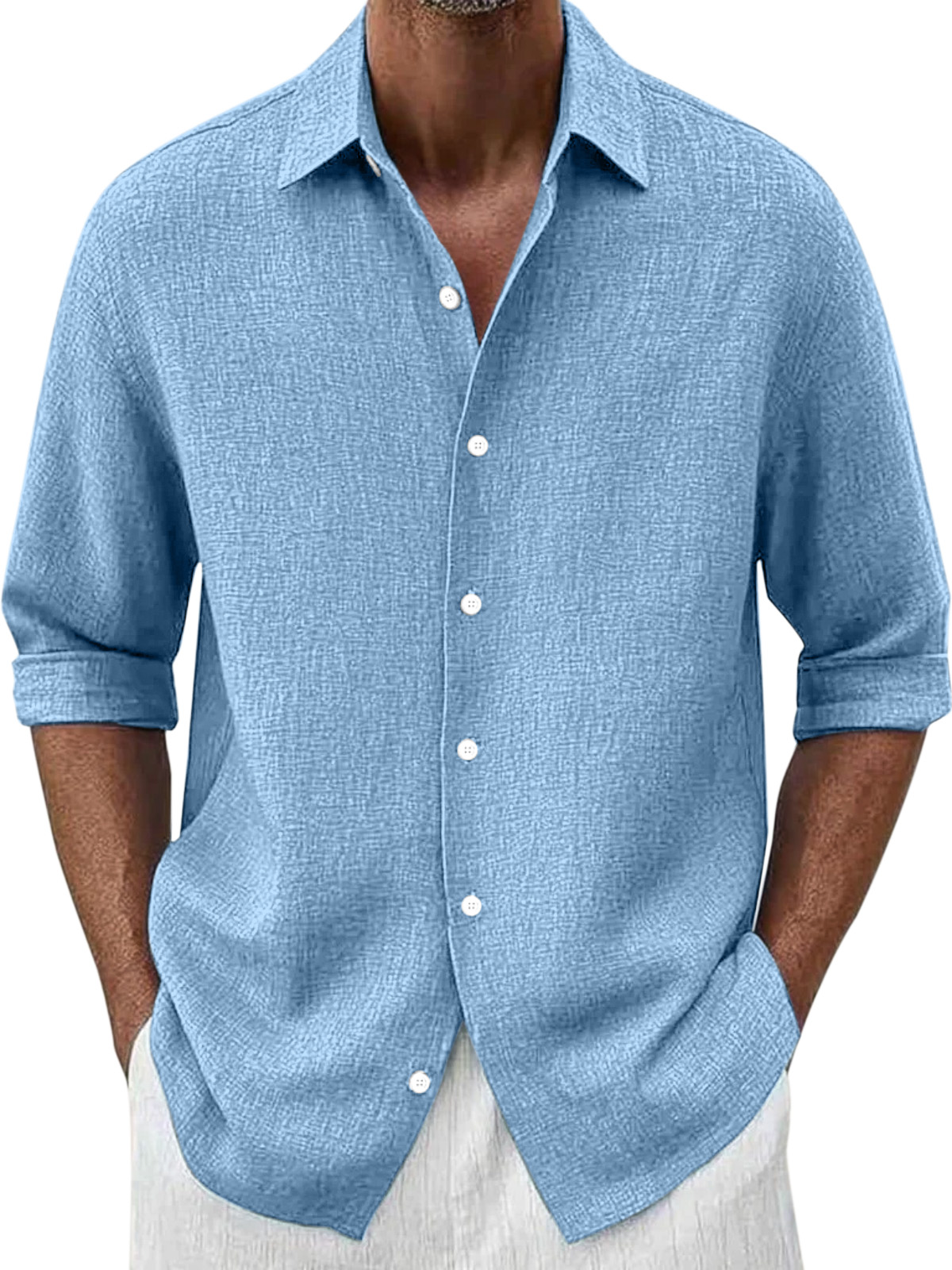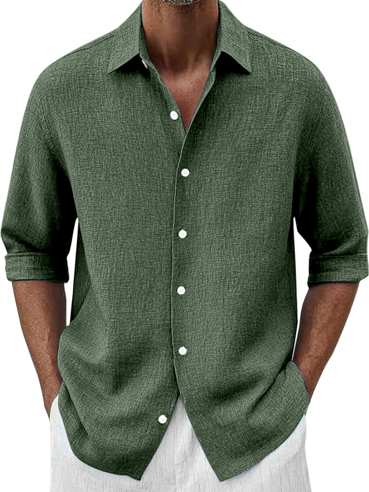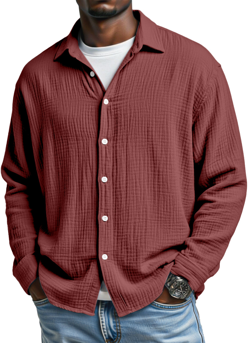 Men's Basic Solid Color Retro Lapel Button-down Long-sleeved Shirt