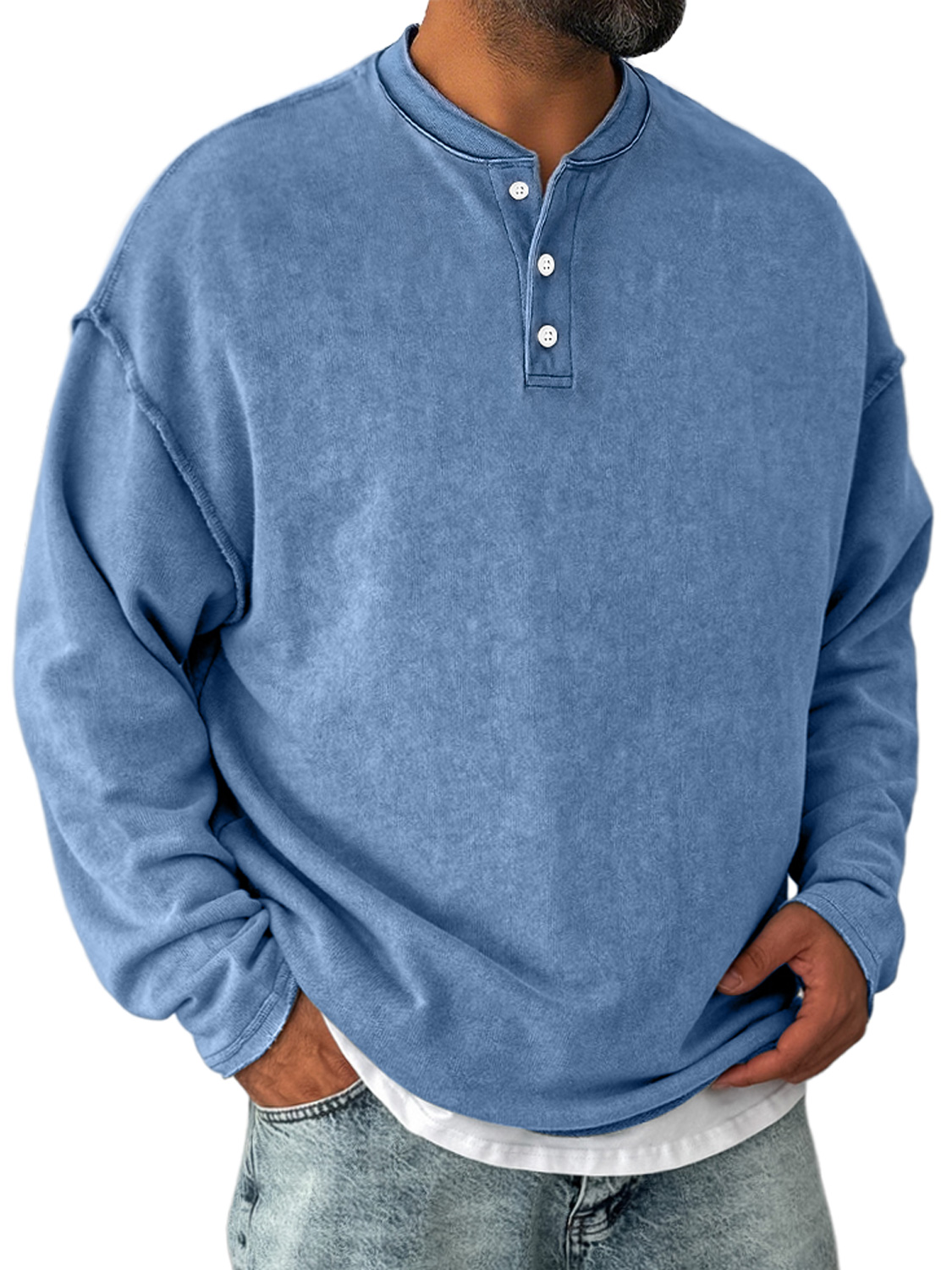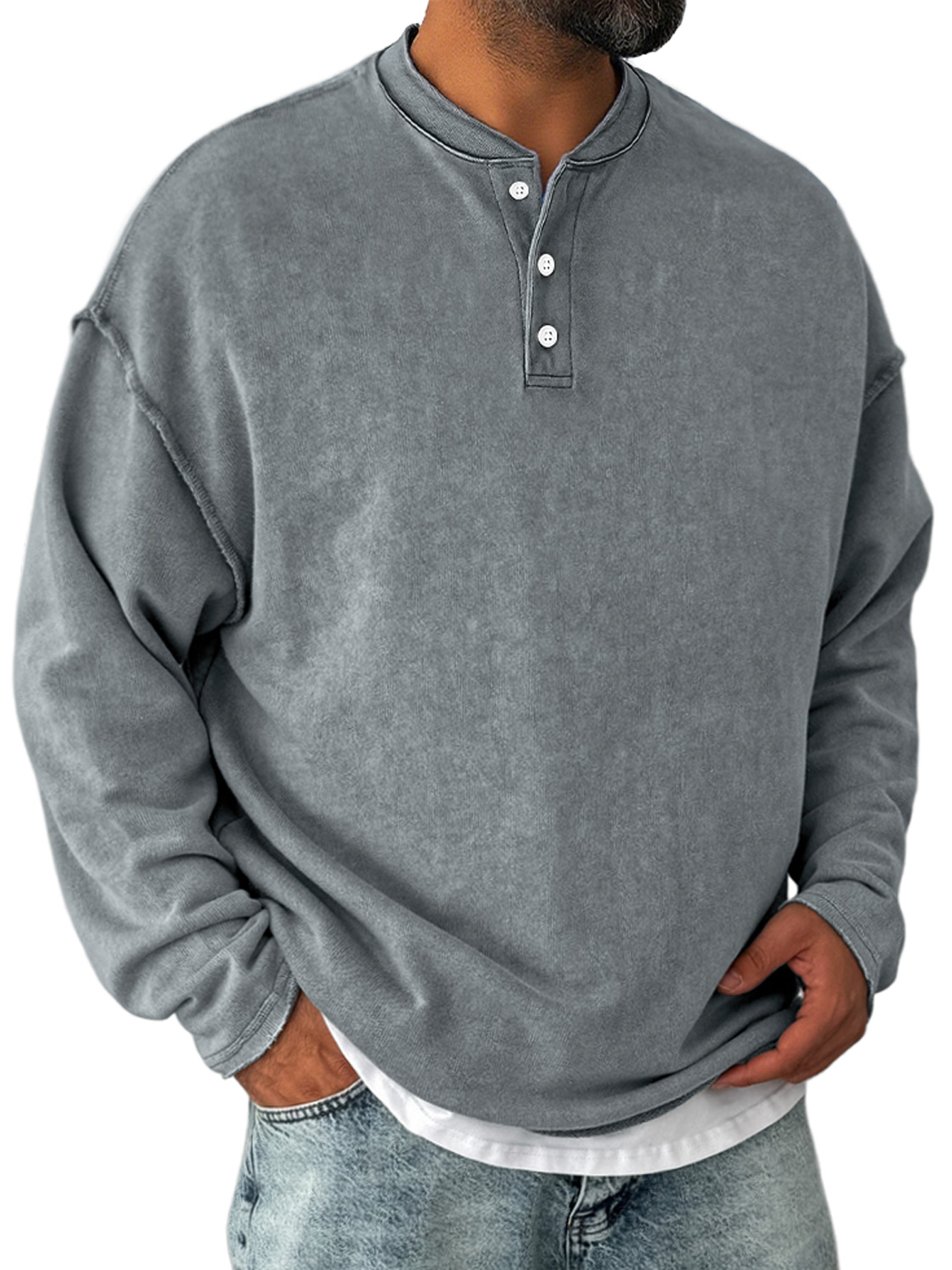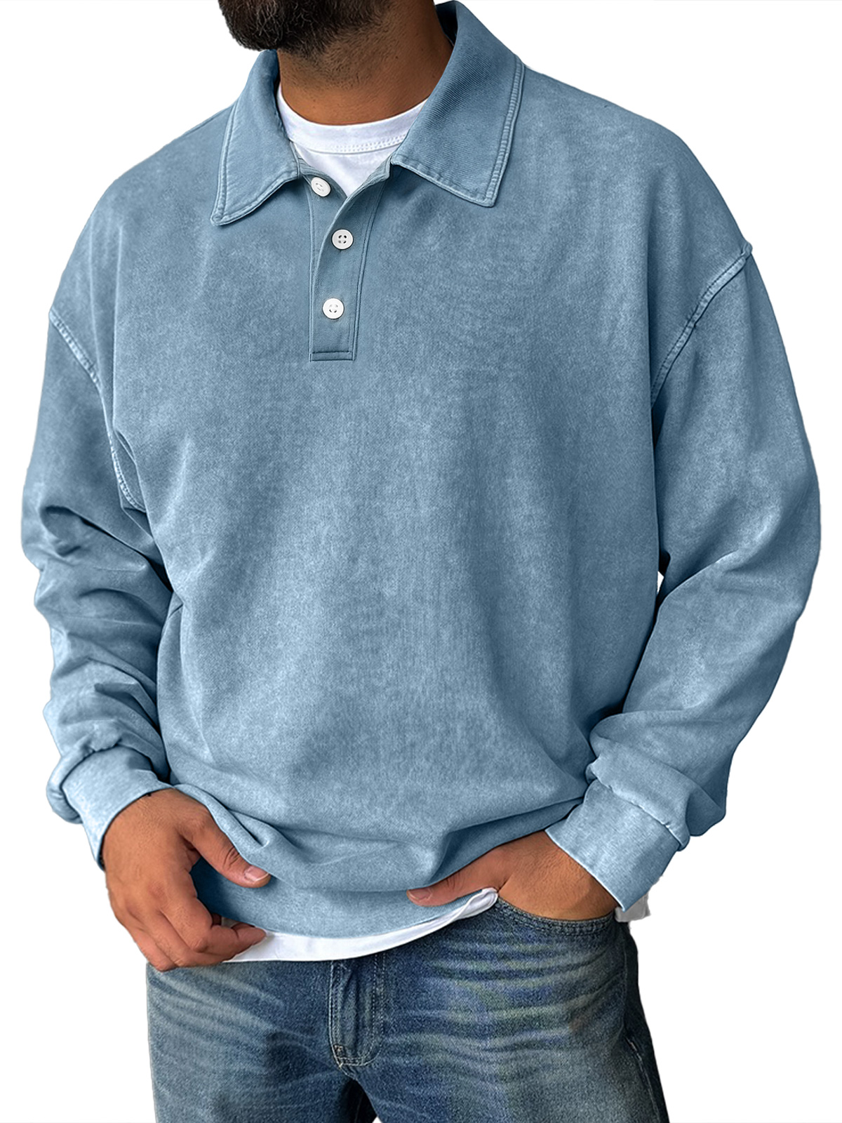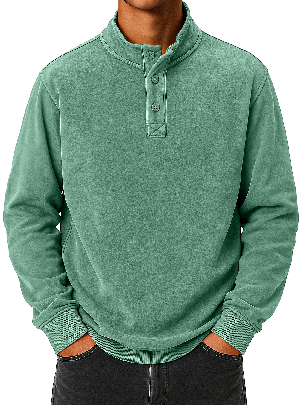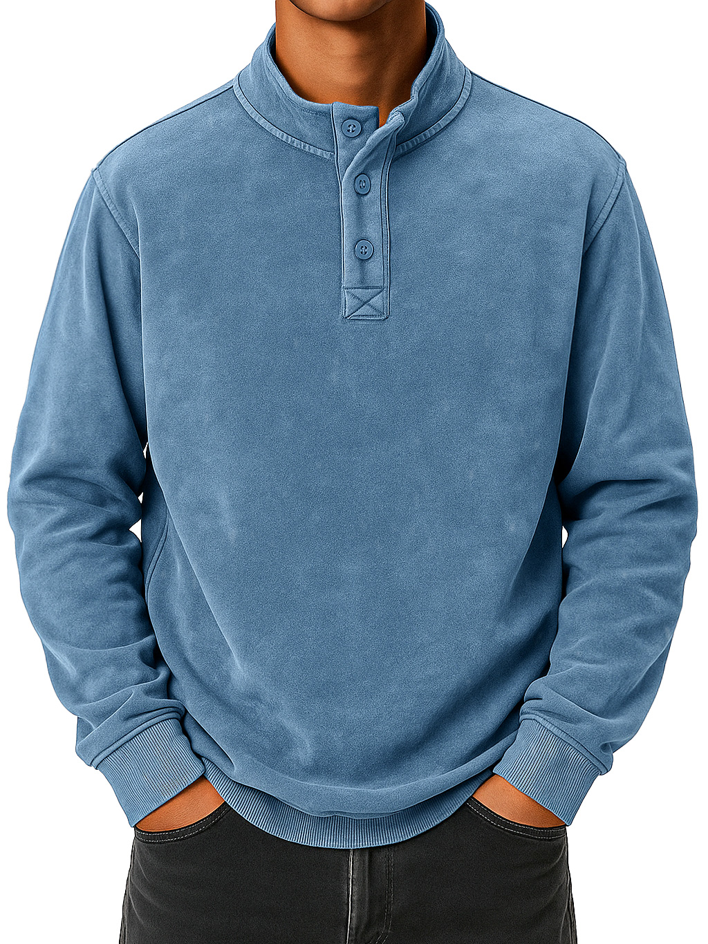 Men's vintage distressed stand collar button-down comfortable sweatshirt