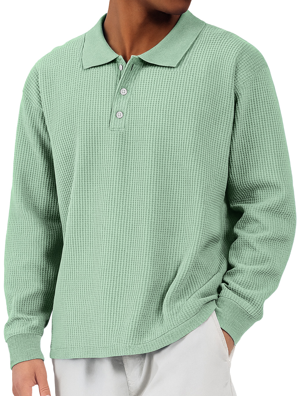 Men's Daily Waffle Casual Lapel Button Loose Long Sleeve Polo Shirt