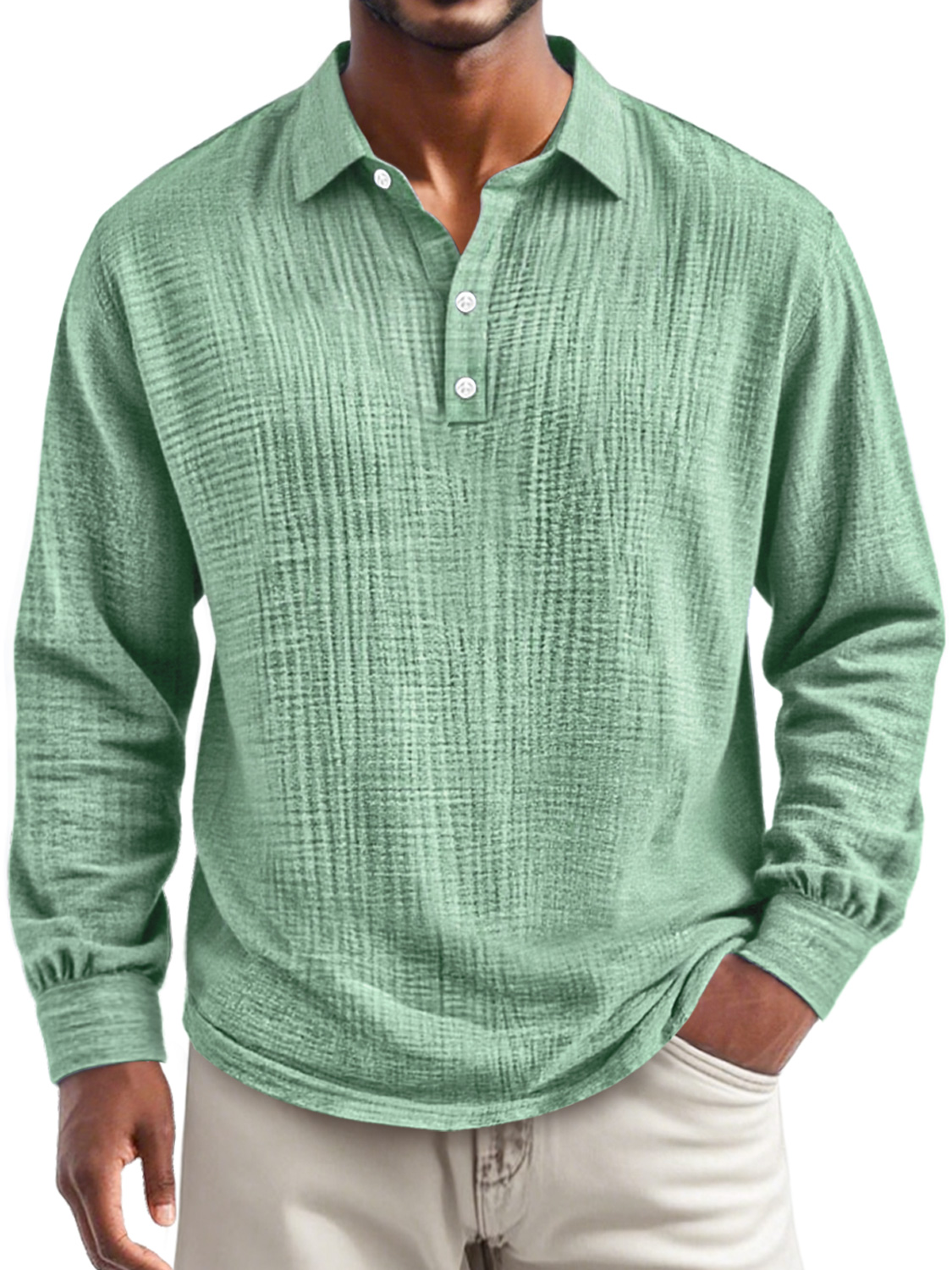 Men's Daily Casual Solid Color Textured Button Long-sleeved Polo Shirt