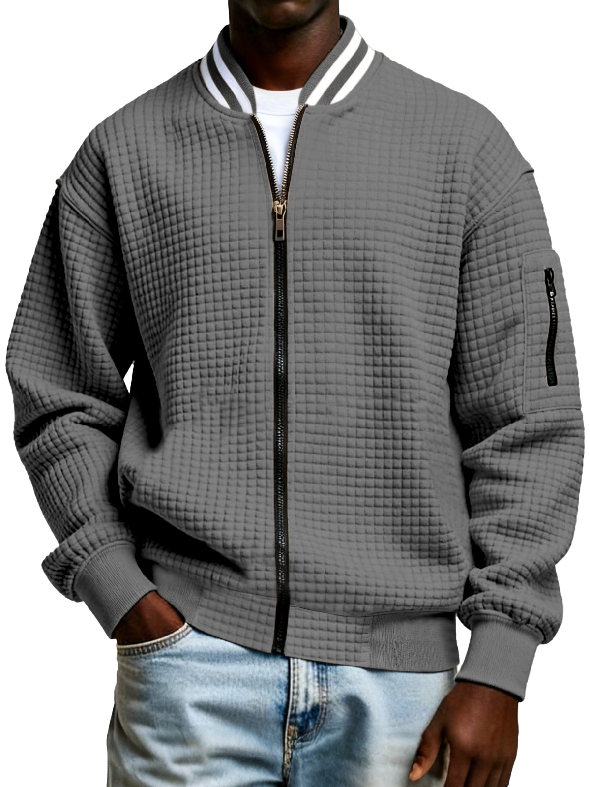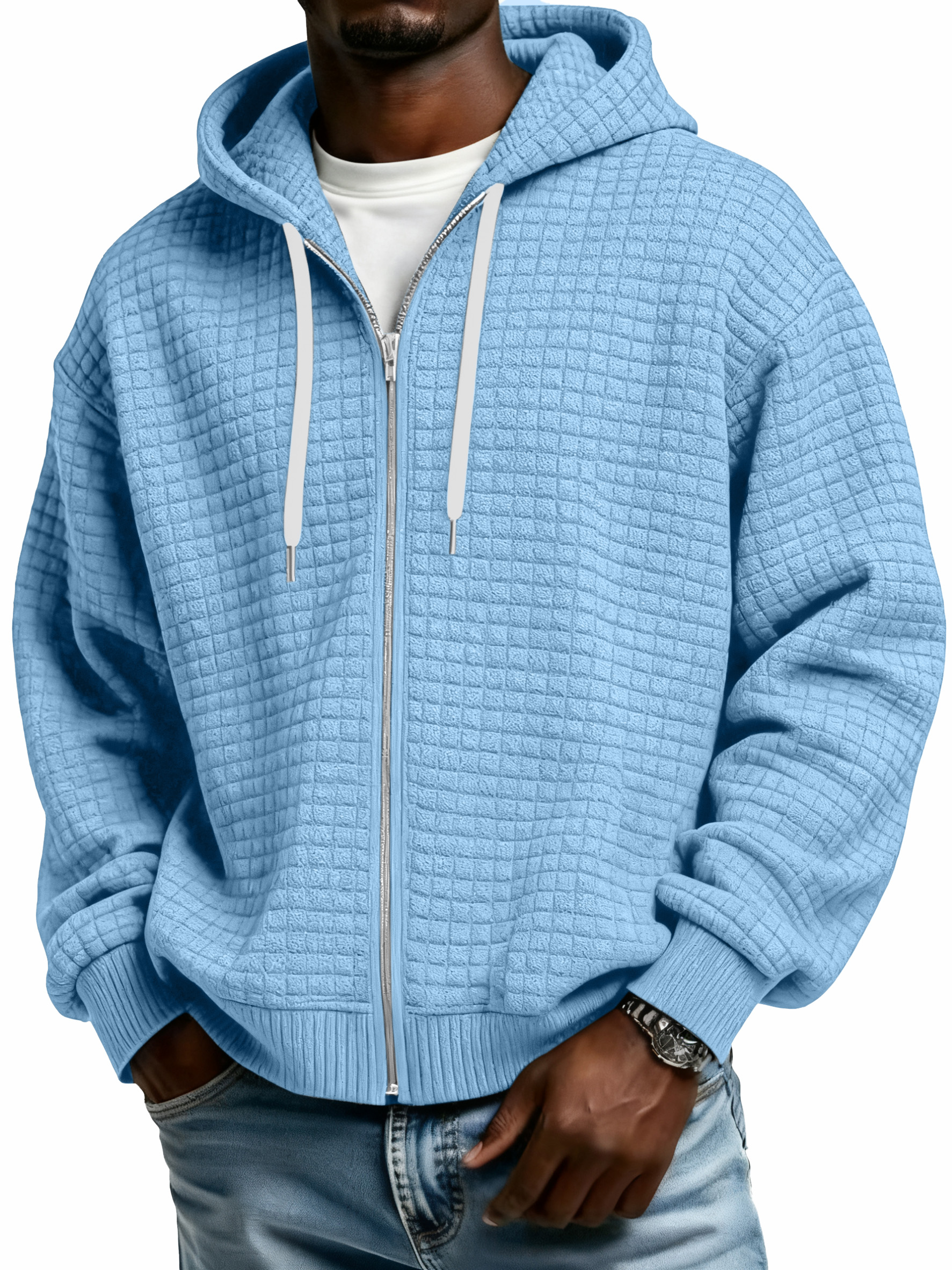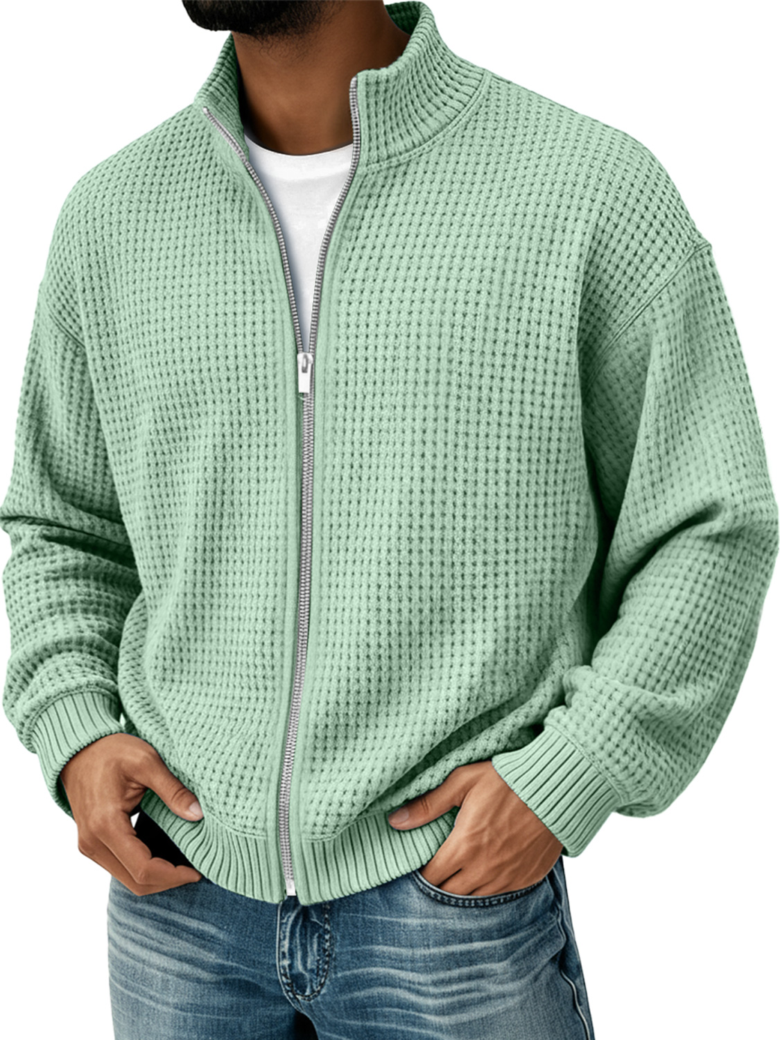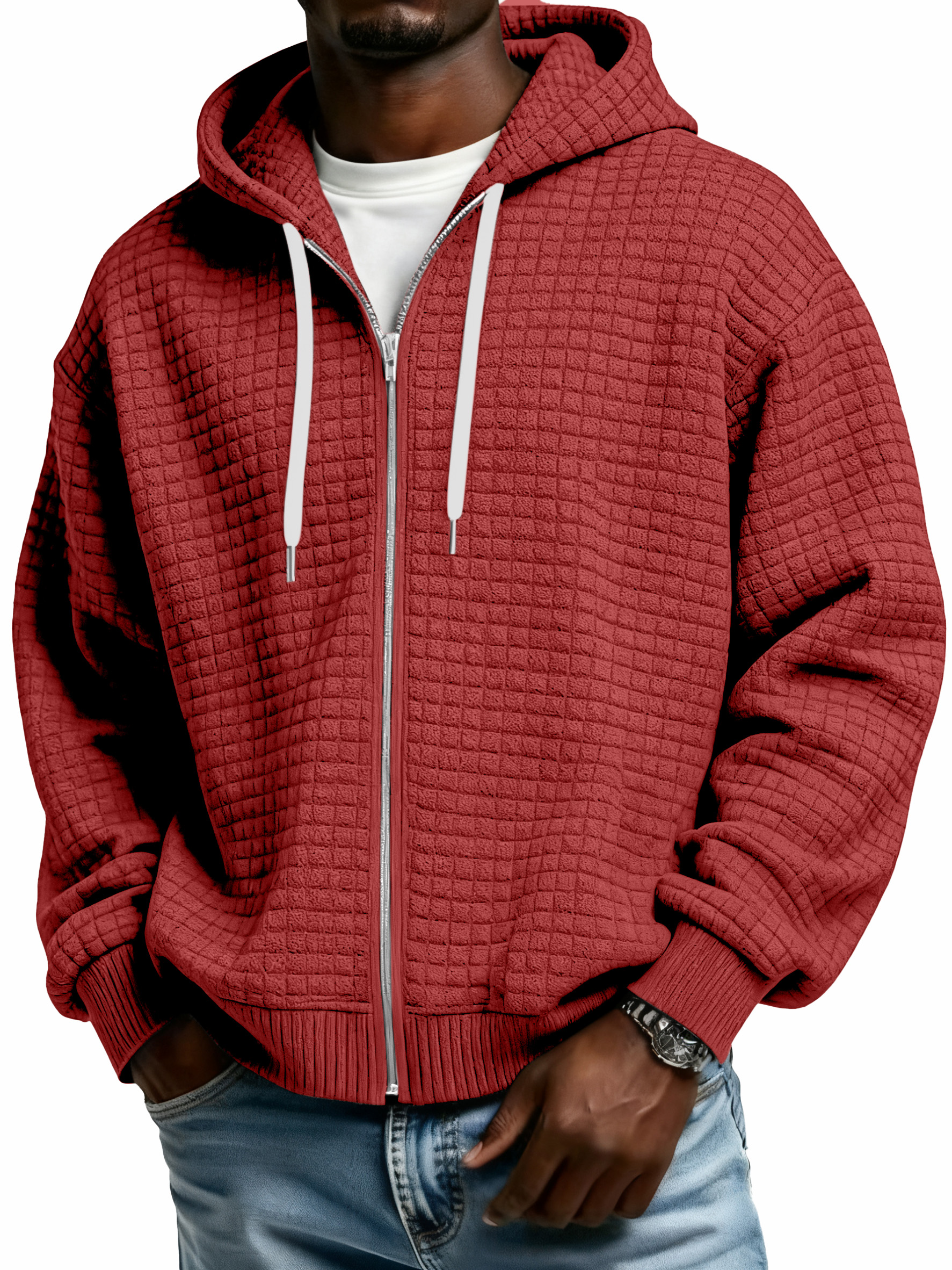Men's Waffle Knit Casual Loose Zip-up Jacket