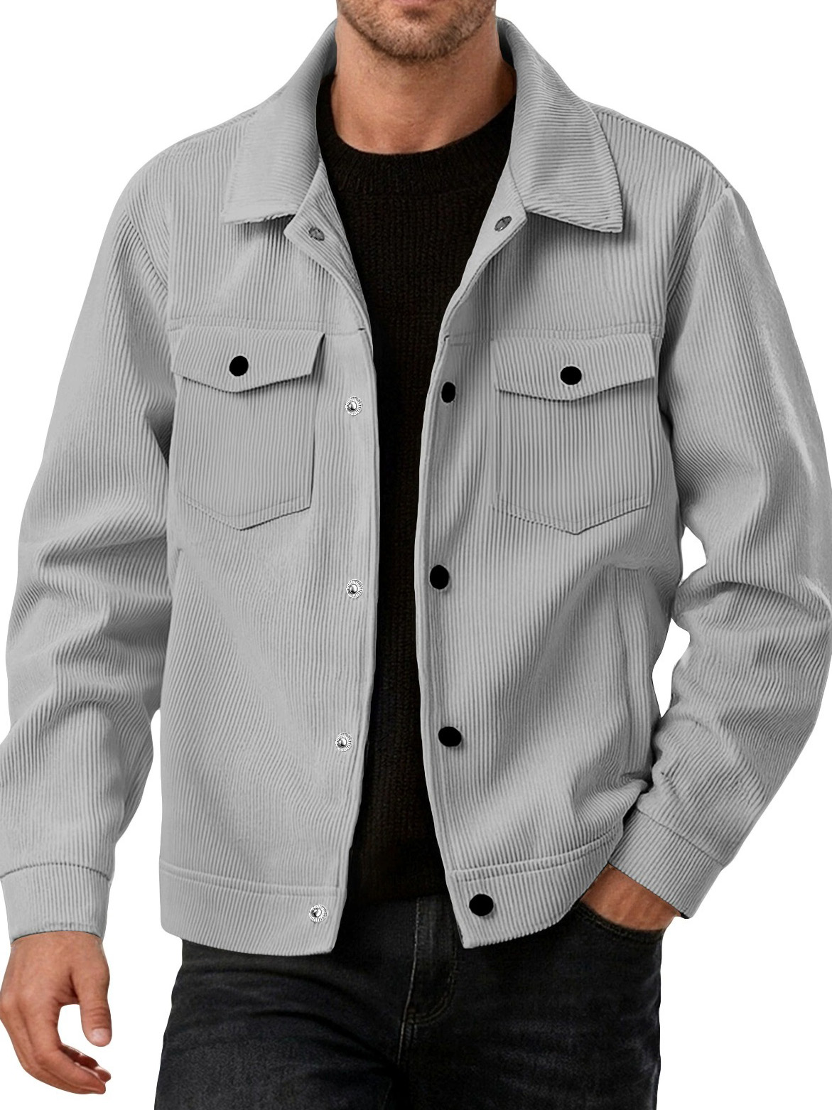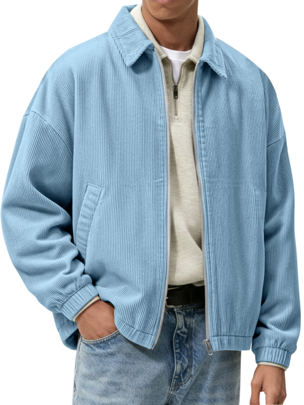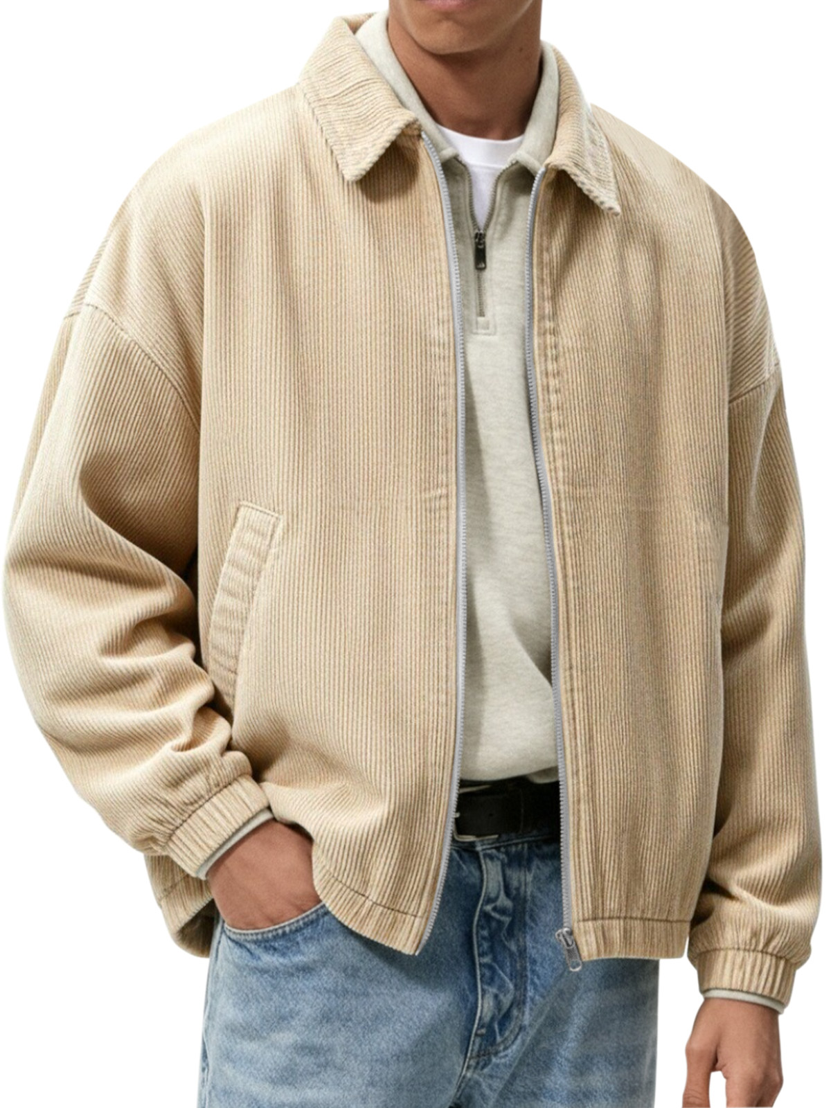 Men's Stylish Zip-up Corduroy Ribbed Casual Everyday Jacket