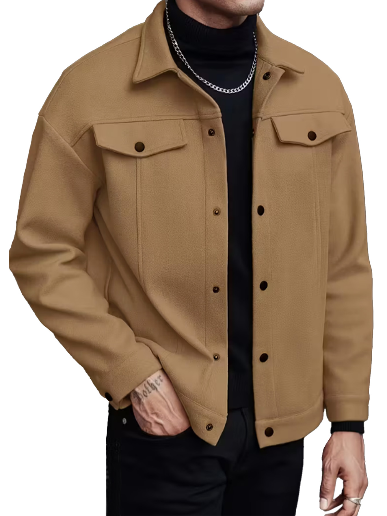 Men's Casual Fashion Solid Color Woolen Jacket