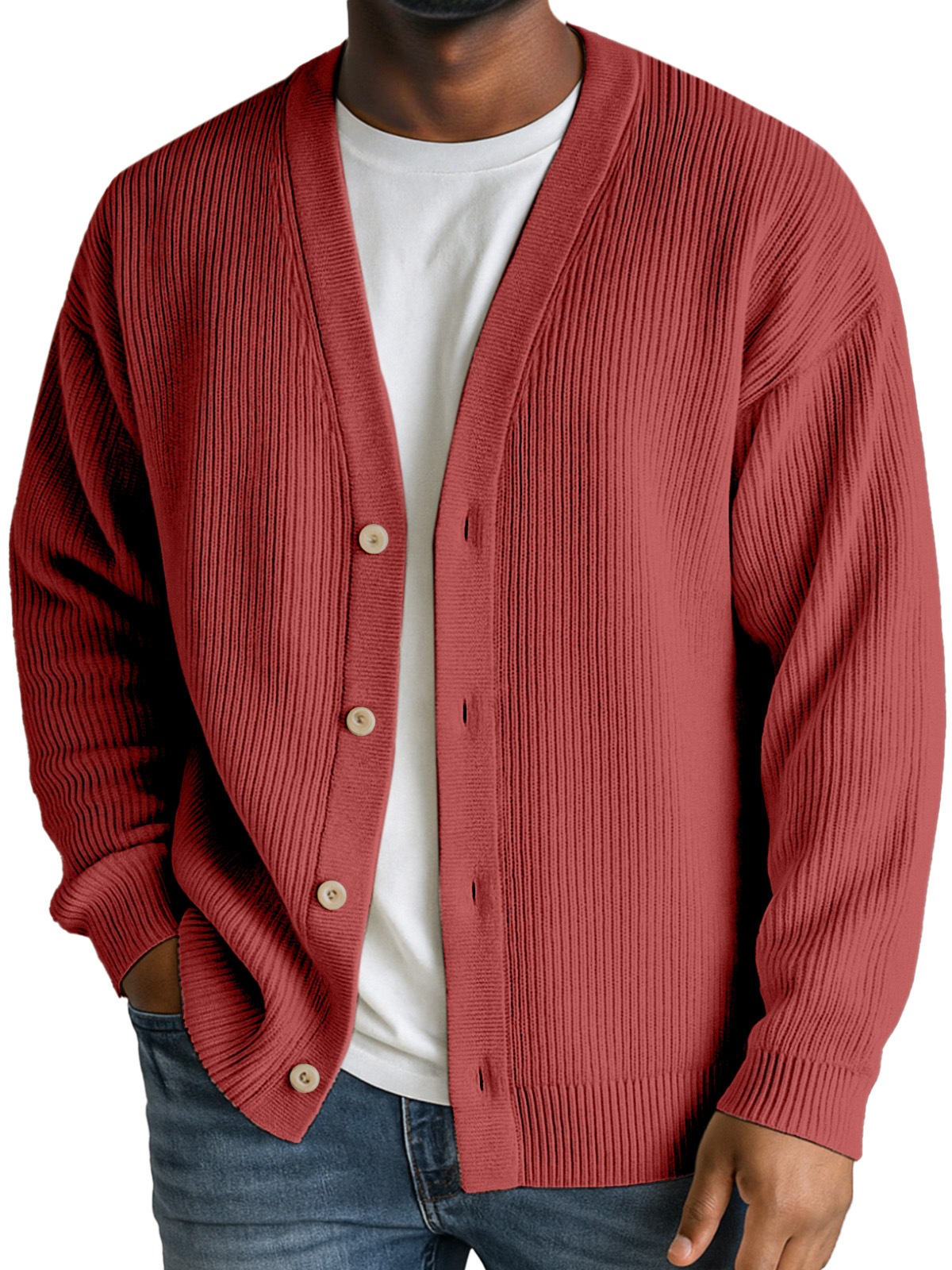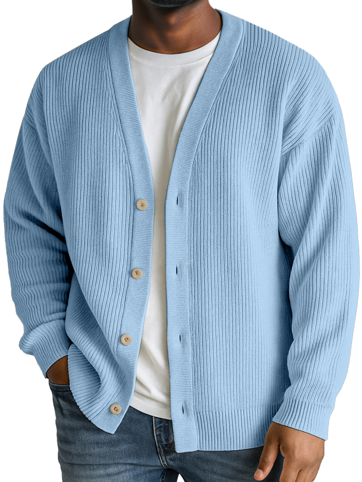 Men's Casual Daily Solid Color Vertical Pit Button V-neck Jacket Cardigan