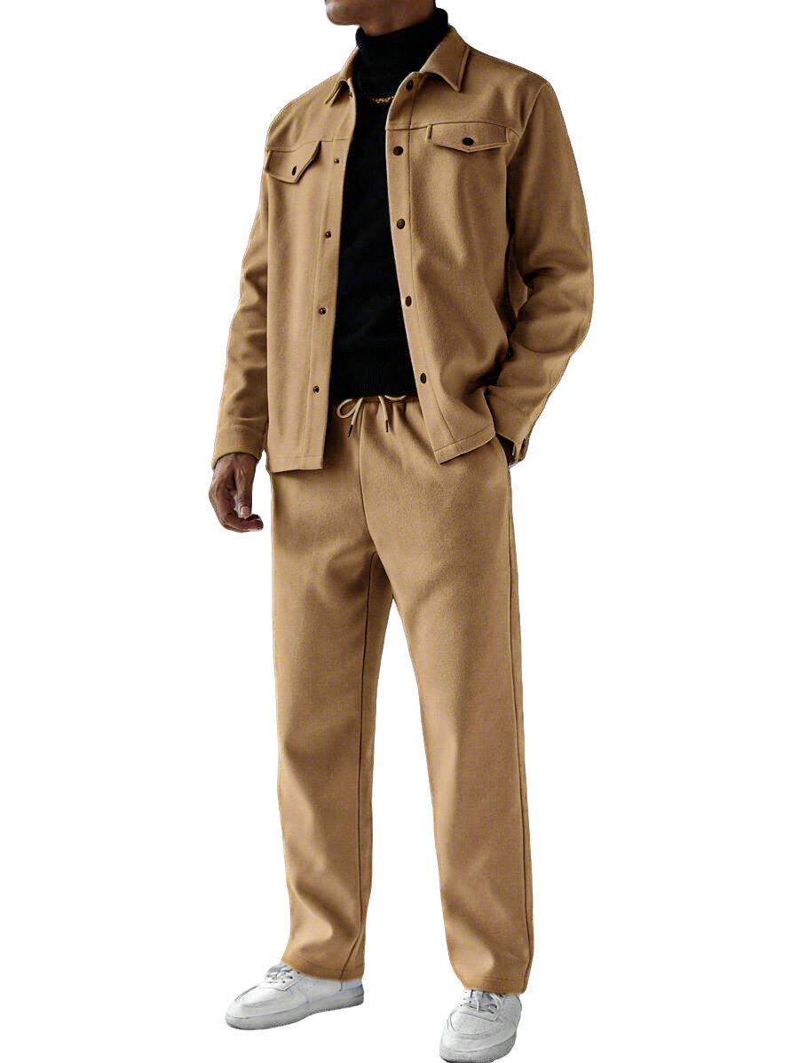 Heavyweight Casual Solid Color Suede Jacket and Trousers Set