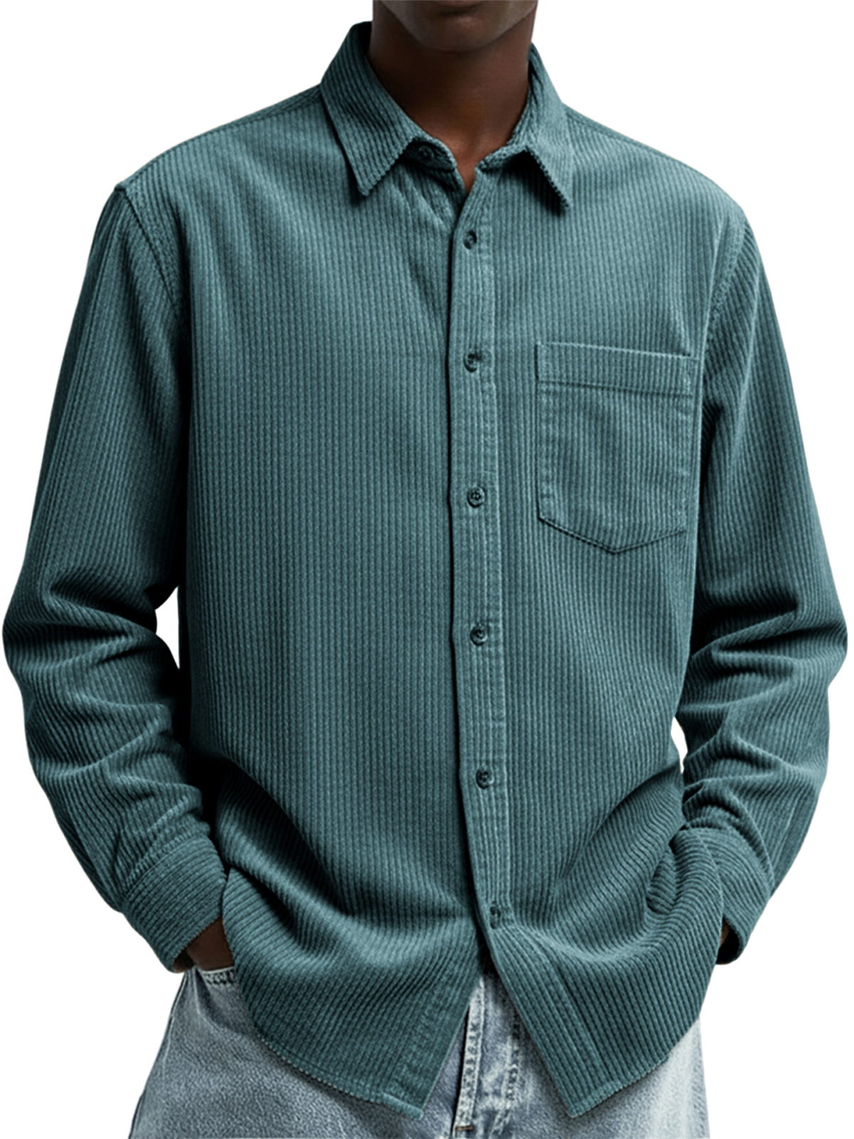 Men's Stylish Corduroy Long-sleeved Shirt with Chest Pocket