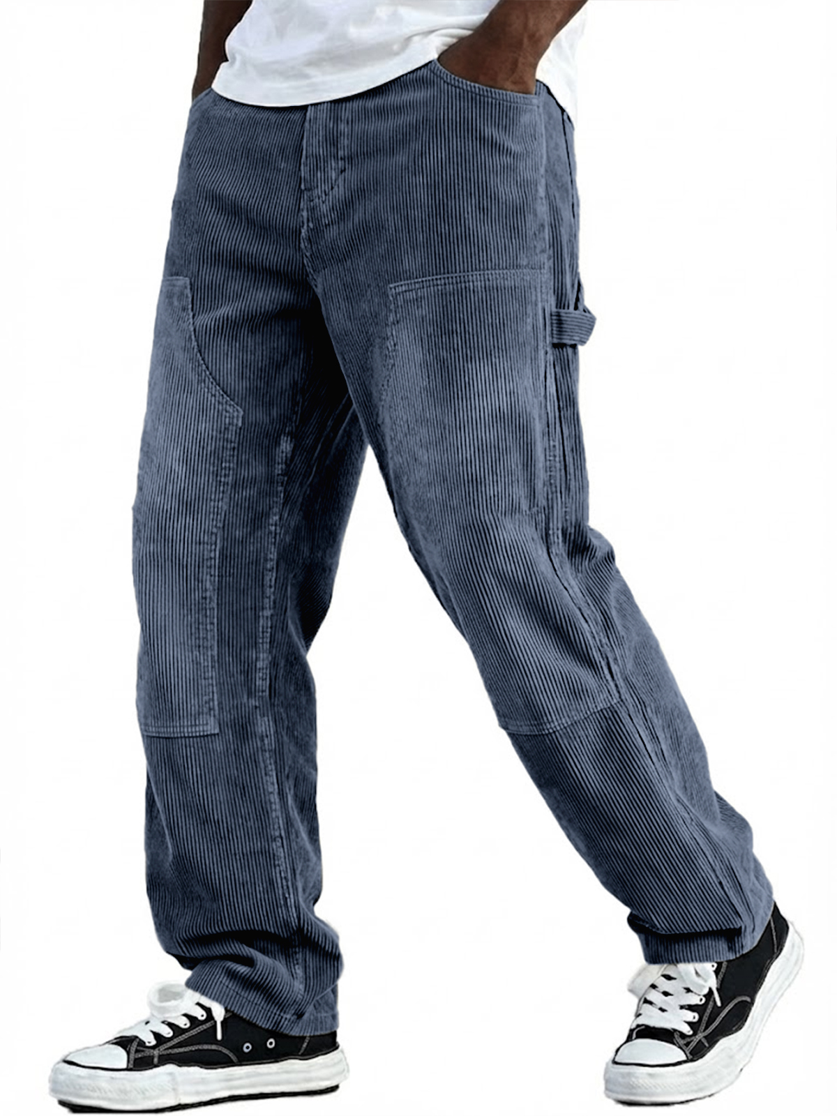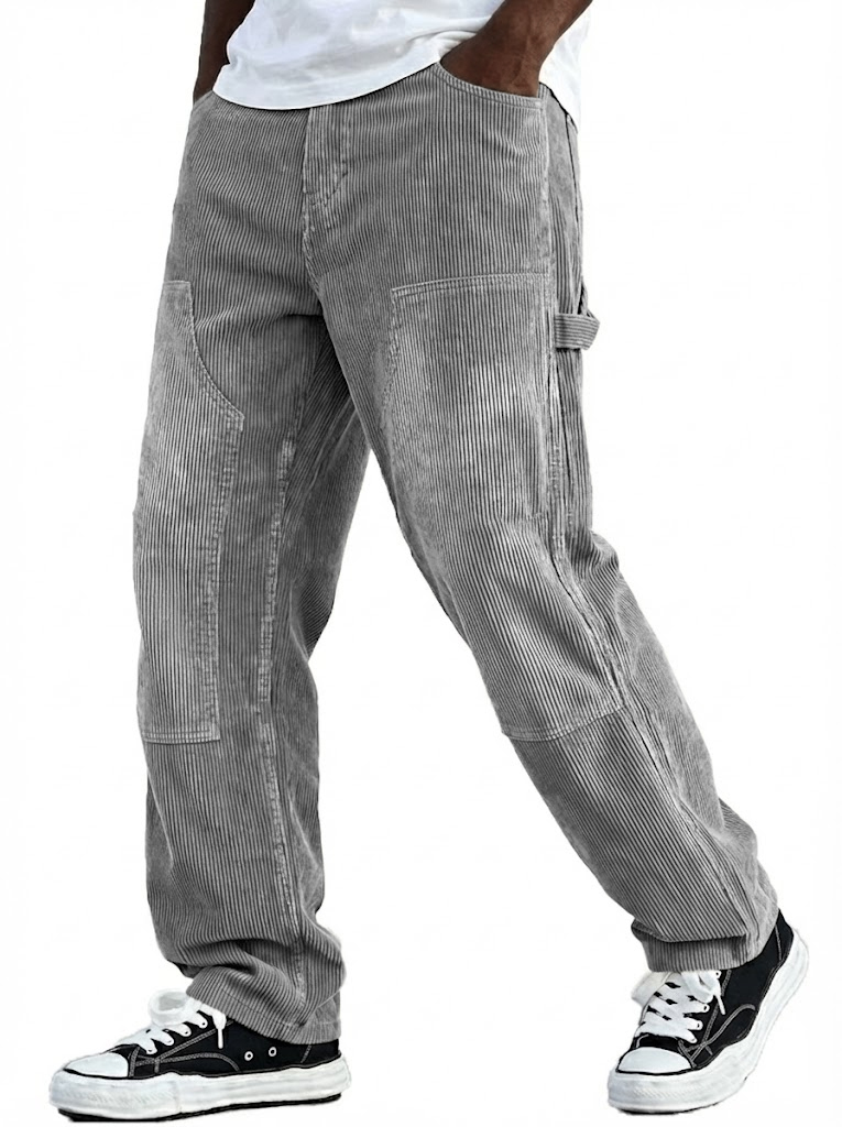 Men's Vintage Corduroy Workwear Carpenter Pants Loose Everyday Trousers