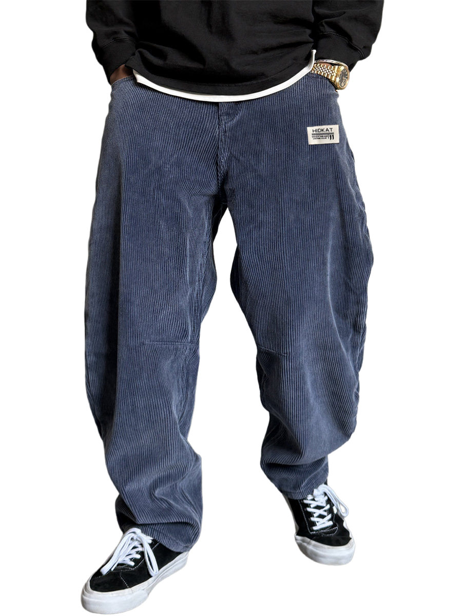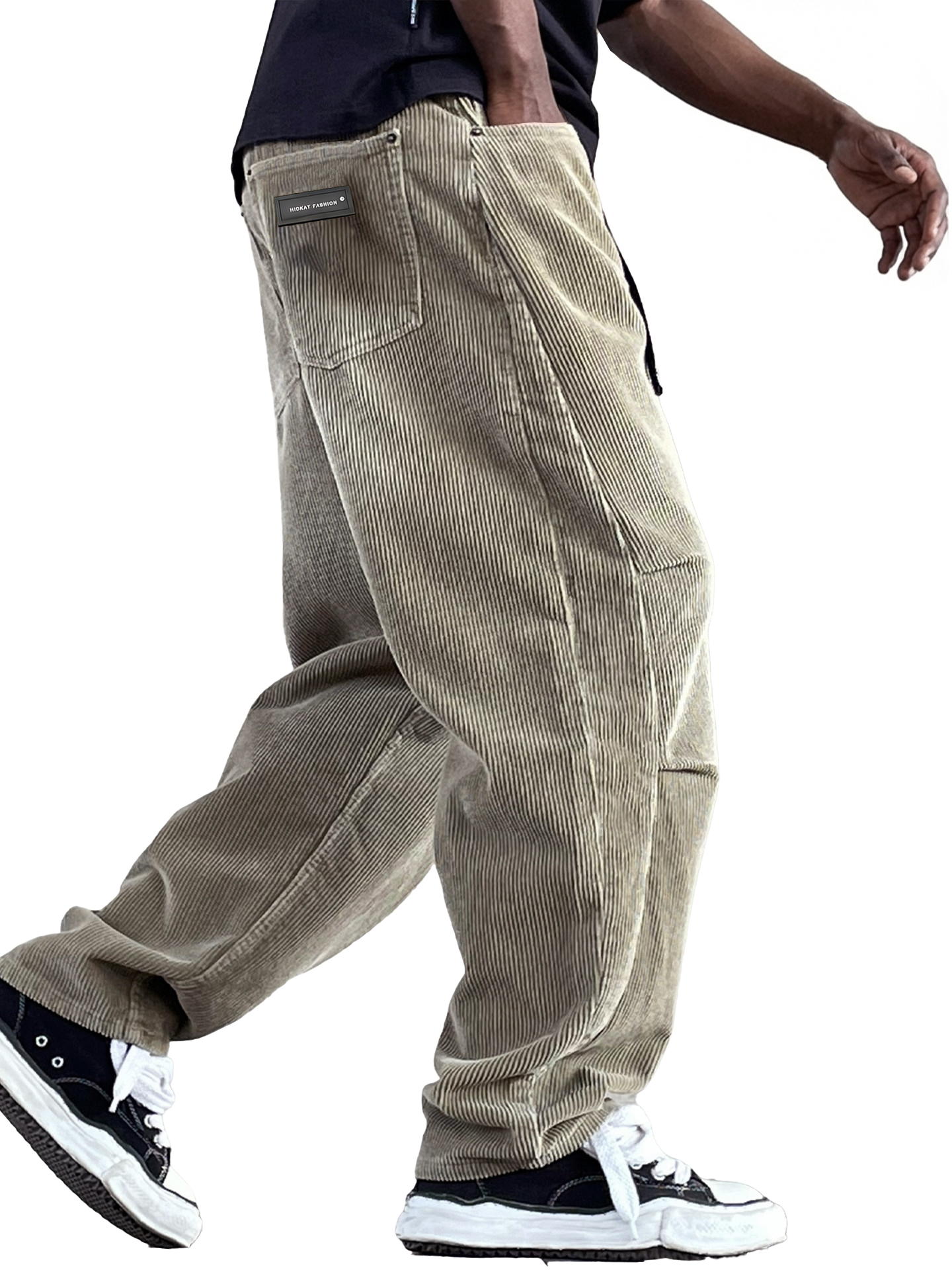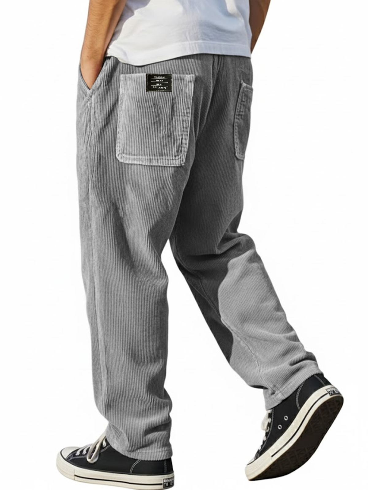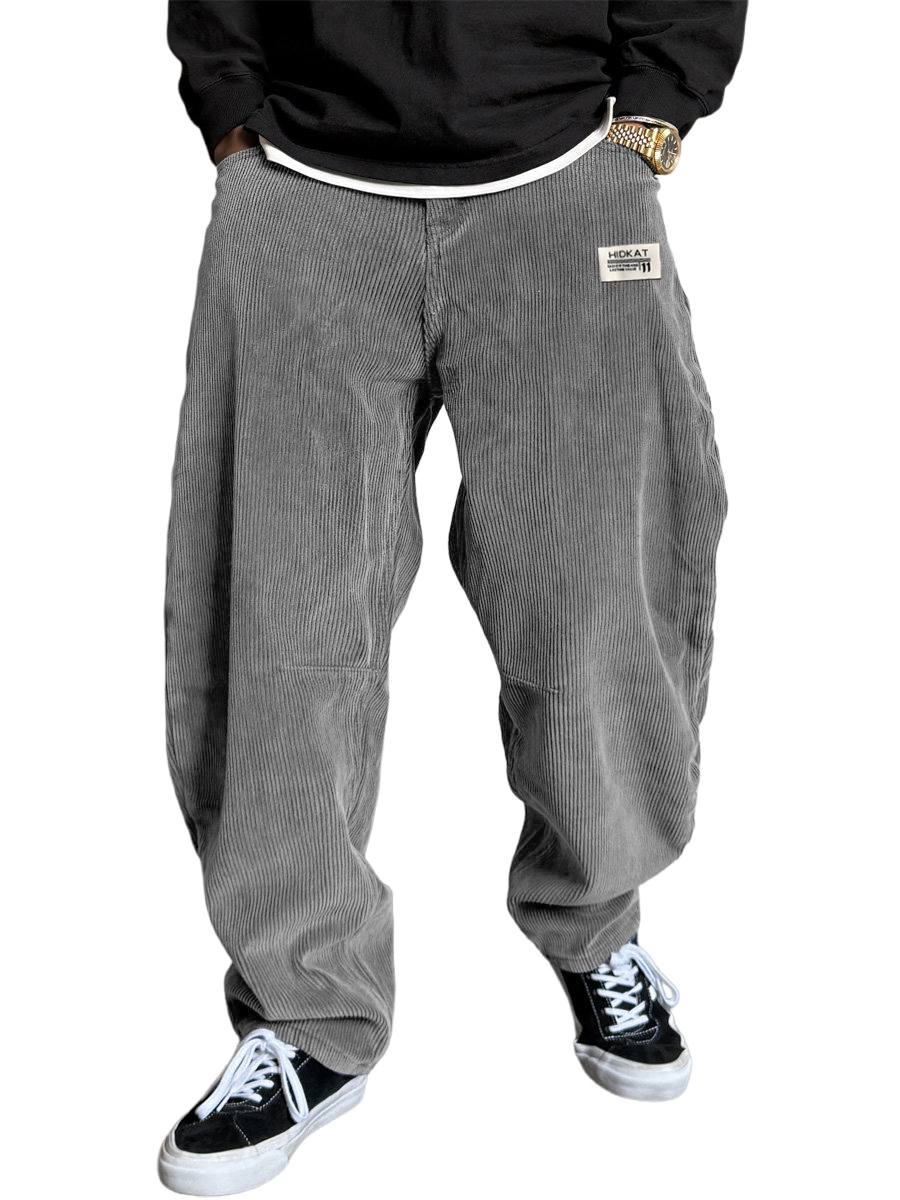 Men's Vintage Corduroy Textured Minimalist Trousers with Embroidered Label