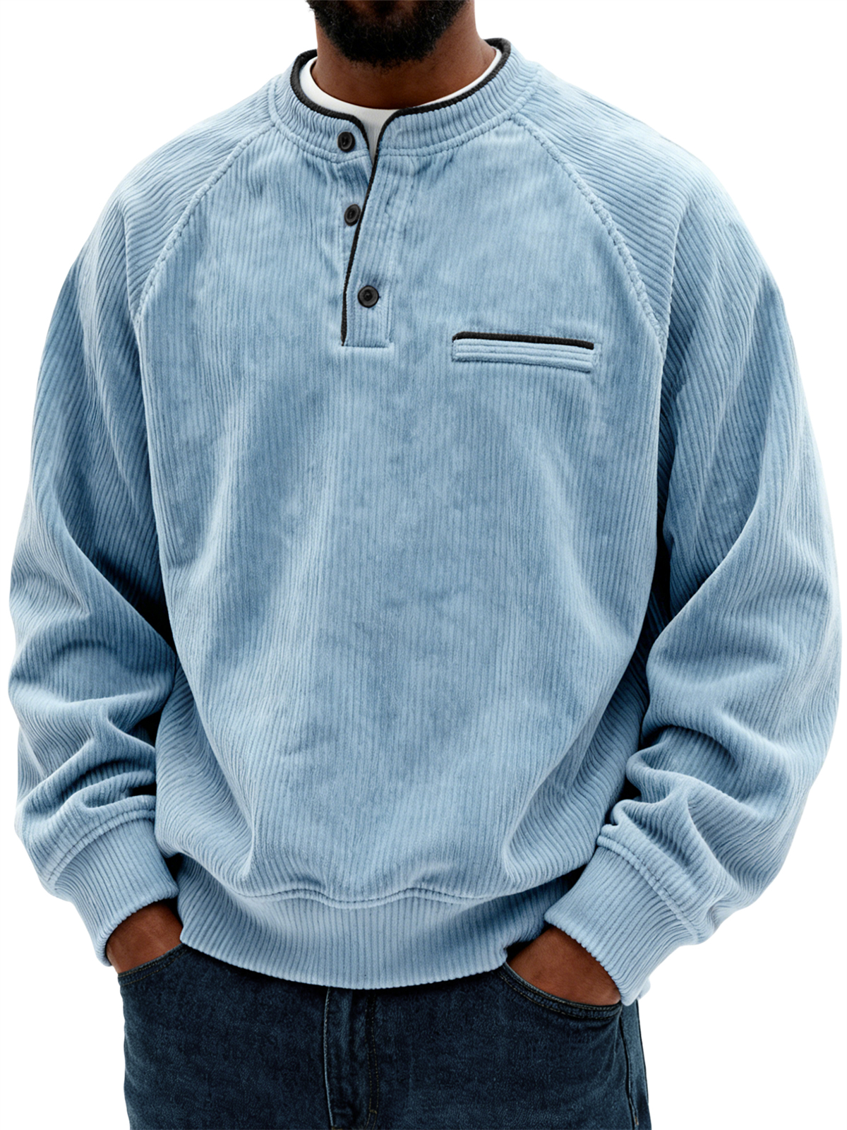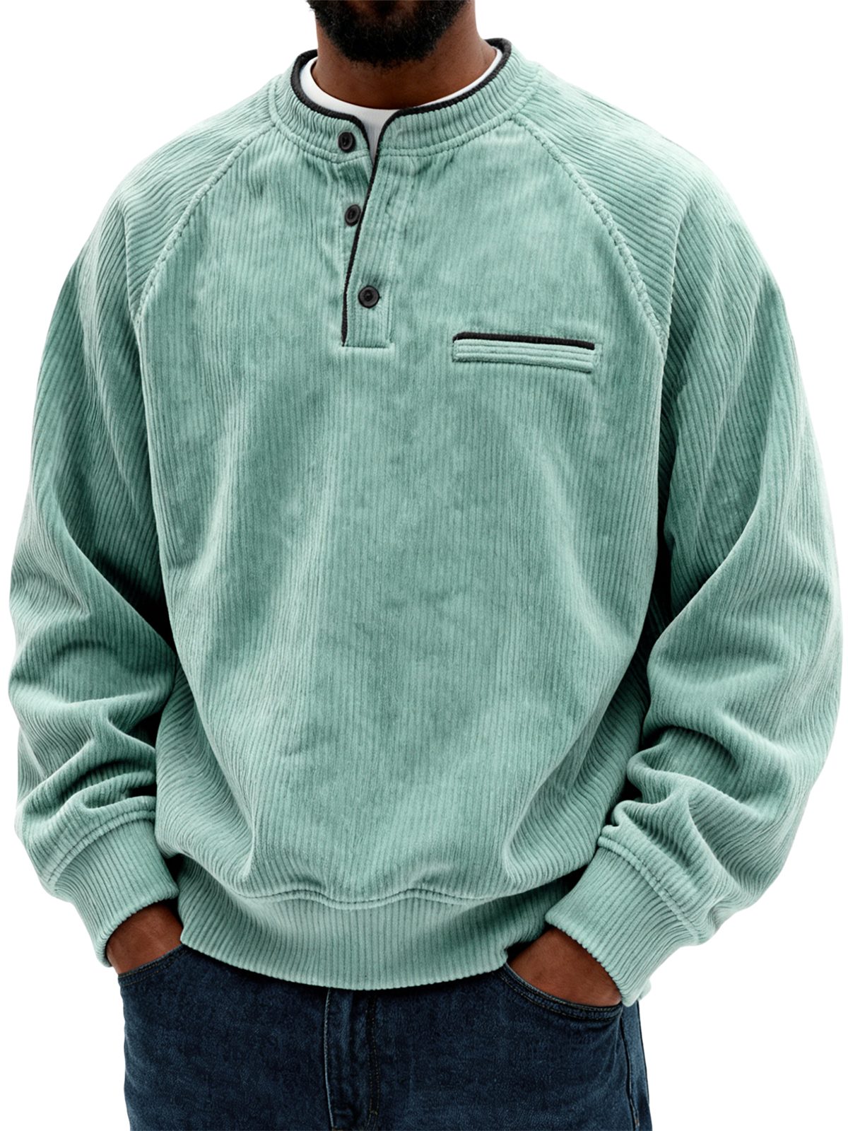 Men's Retro Corduroy Raglan Casual Long-Sleeve Henley Shirt