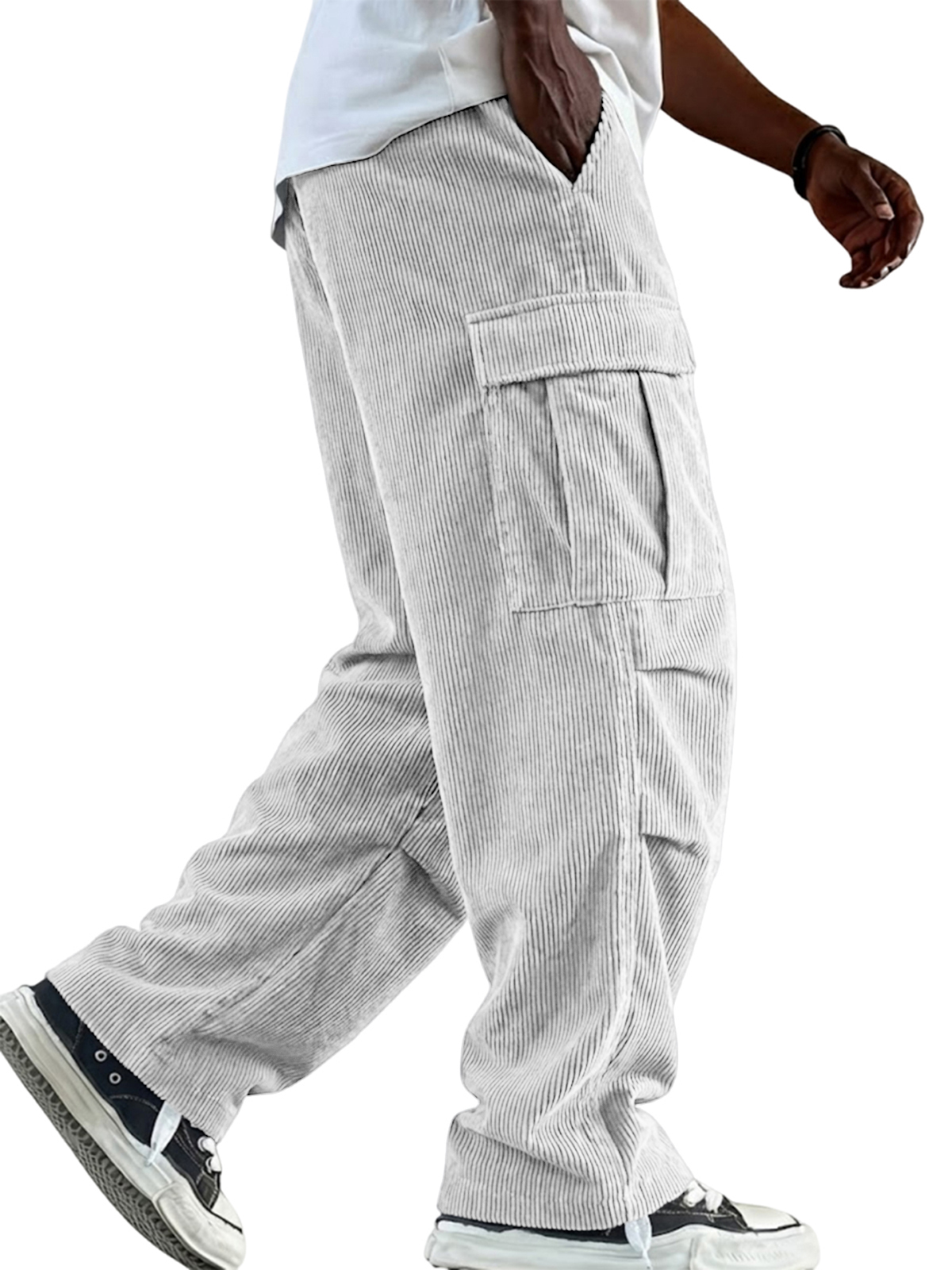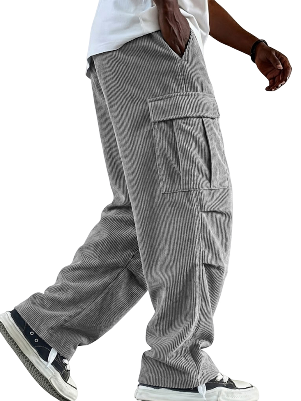 Men's Vintage Corduroy Cargo Workwear Trousers with Multiple Pockets