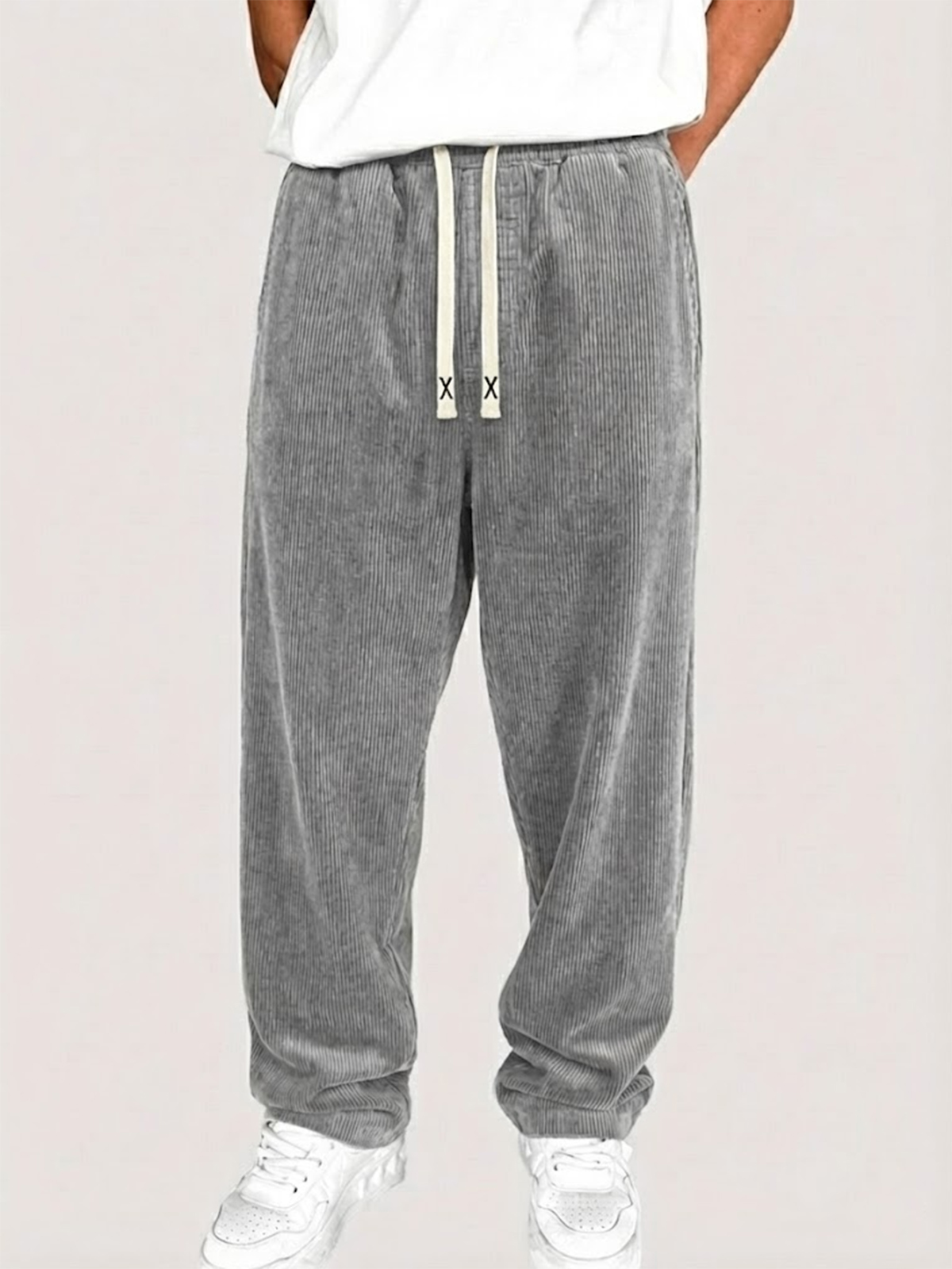 Men's Corduroy Solid Color Casual Loose-fitting Trousers