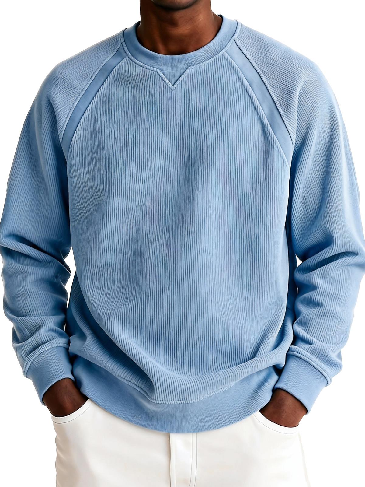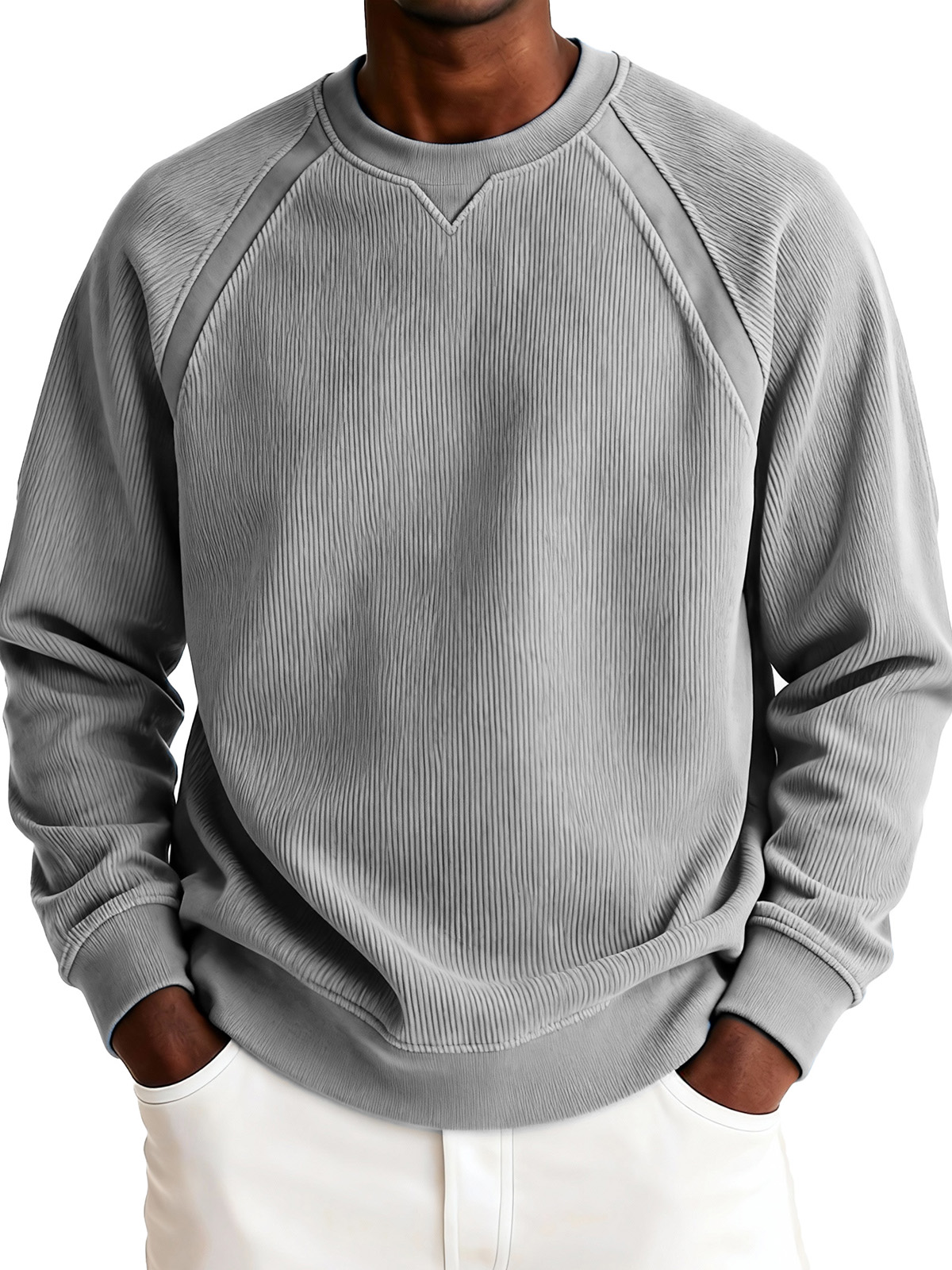 Men's Simple Corduroy Ribbed Raglan Sleeve Crew Neck Pullover Sweatshirt
